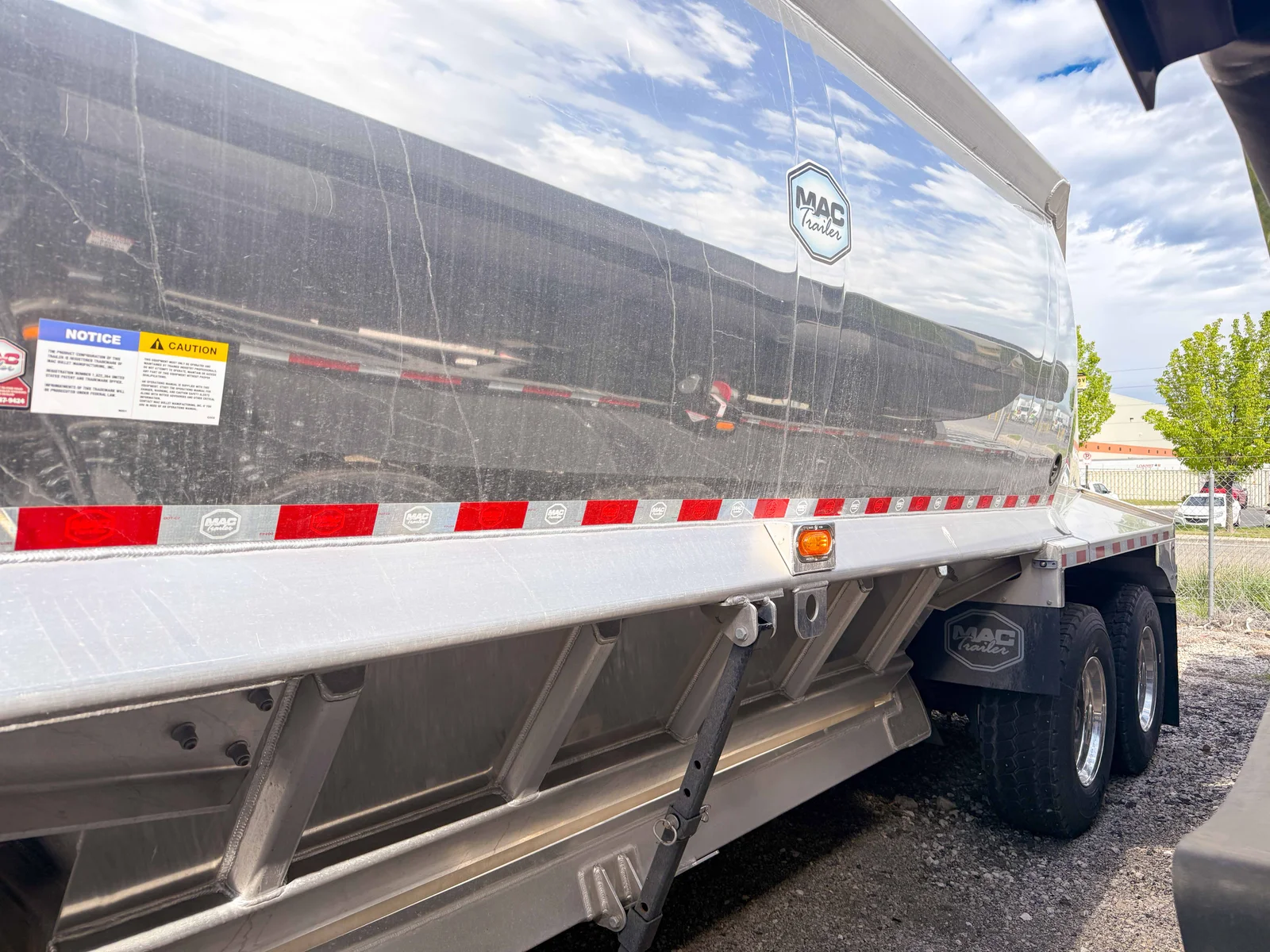 2027 bottom dump trailer with Bendix Disc Brakes, spring suspension, and a 4-axle configuration. 22 cubic yard capacity with reinforced hopper design supports heavy material hauling.\n\n• Type: Bottom dump trailer\n• Year: 2027\n• Make: MAC\n• Model: Bullet\n• Capacity: 22 Cubic Yards\n• Trailer Composition: Aluminum\n• Axles: 4\n• Suspension Type: Spring\n• Suspension Style: Fixed\n• Brake Type: Bendix Disc Brakes\n• Gate Opening: 46" Width\n• Reinforced Hopper Ends\n• Light Weight Corner Fillets\n• Cab Control Wiring Kit\n• ABS: 2S/2M\n• Tire Inflation System\n• Aluminum Wheels\n• Dust Shields\n• LED Lighting Package\n• Louver Deflectors\n\nThis trailer is available now at our Salt Lake City location. Mountain West Utility Trailer offers financing and trailer rentals. Call us at 801-973-4040.