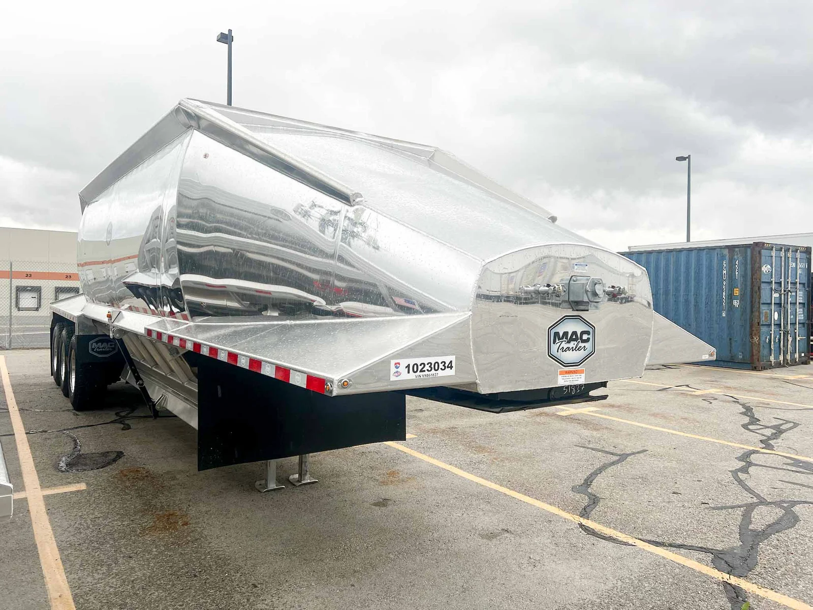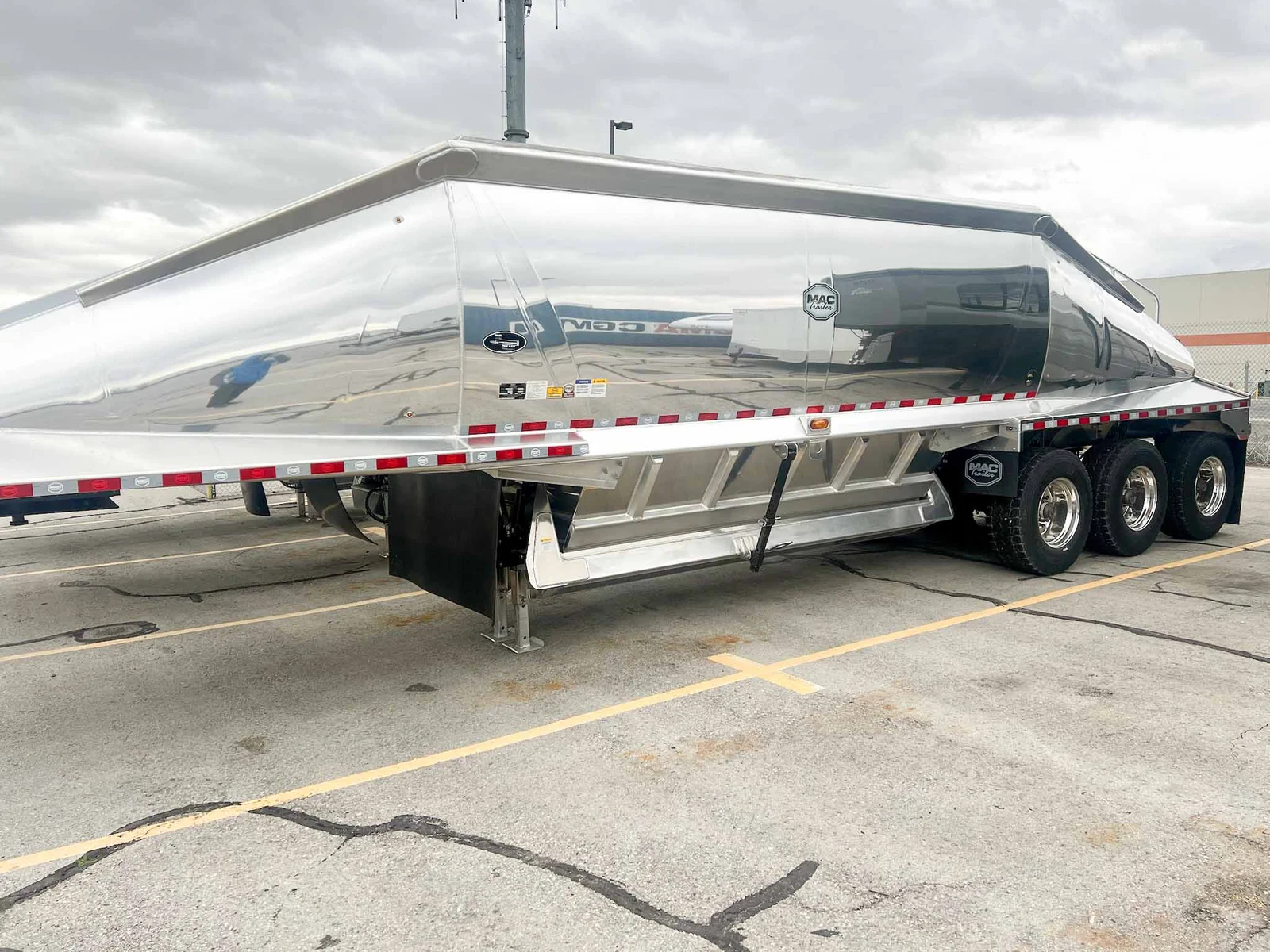 2027 MAC Bullet bottom dump trailer built for construction applications with aluminum construction and 23 cubic yard capacity. Equipped with air disc brakes, three axles, spring suspension, Tiremaax CP tire inflation system, and reinforced hopper construction.\n\nSpecs:\n\nTrailer Type: Bottom Dump Trailer\nModel: Bullet\nLength: 35'\nCapacity: 23 Cu. Yds.\nBrakes: Air Disc Brakes\nAxles: 3\nSuspension: Spring\nSuspension Style: Fixed\nLightweight Corner Fillets\nReinforced Front & Rear Hopper Ends\nGate Opening: 46"W x 1026"L\nSupply Cab Control Wiring Kit\nPintle Hook Assembly\nHutch 9700 Springride Suspension\n2S/2M ABS\nTiremaax CP Tire Inflation System\nAlcoa Aluminum Wheels\nTires: Michelin XZY3 18 Ply\nDust Shields\nOscillating Tapered Kingpin Plate\n\nMountain West Utility Trailer offers financing and trailer rentals. Call us at 801-973-4040.