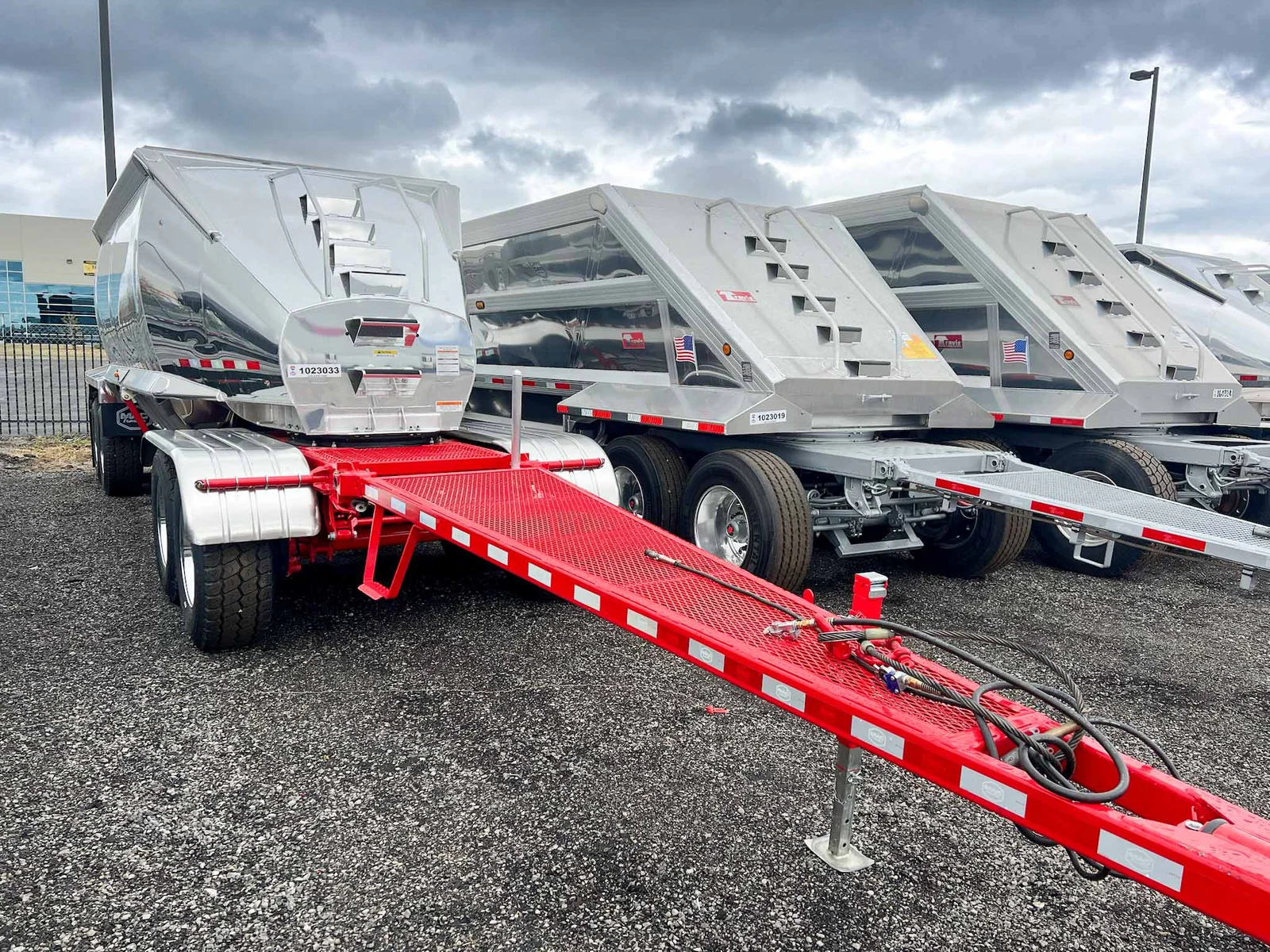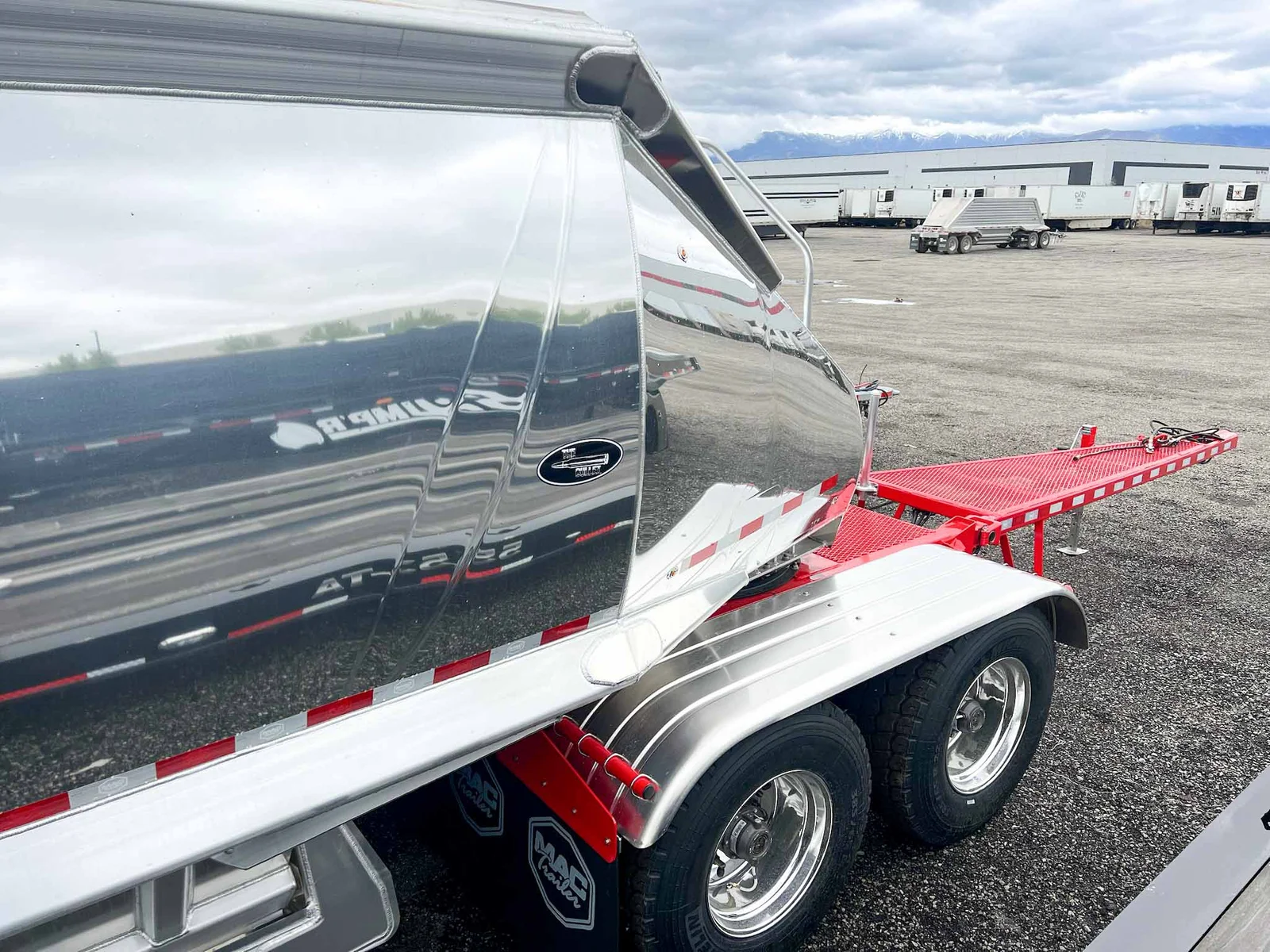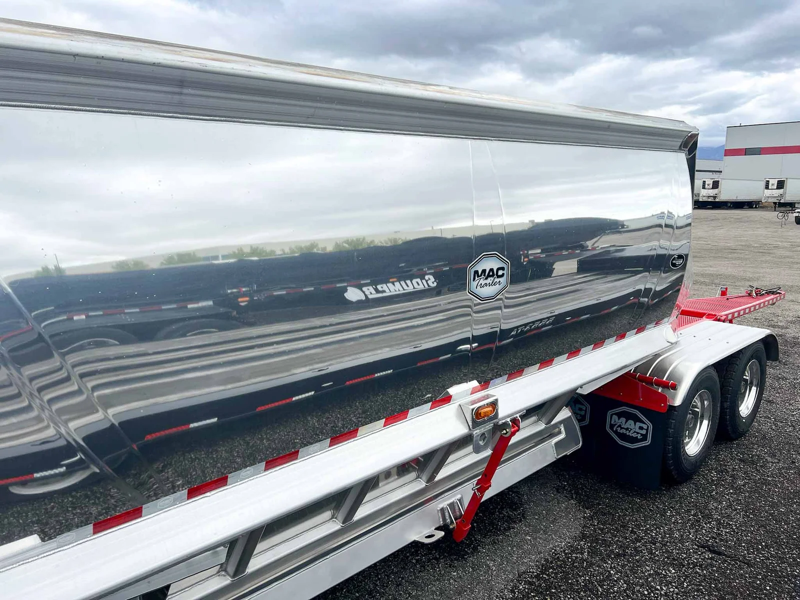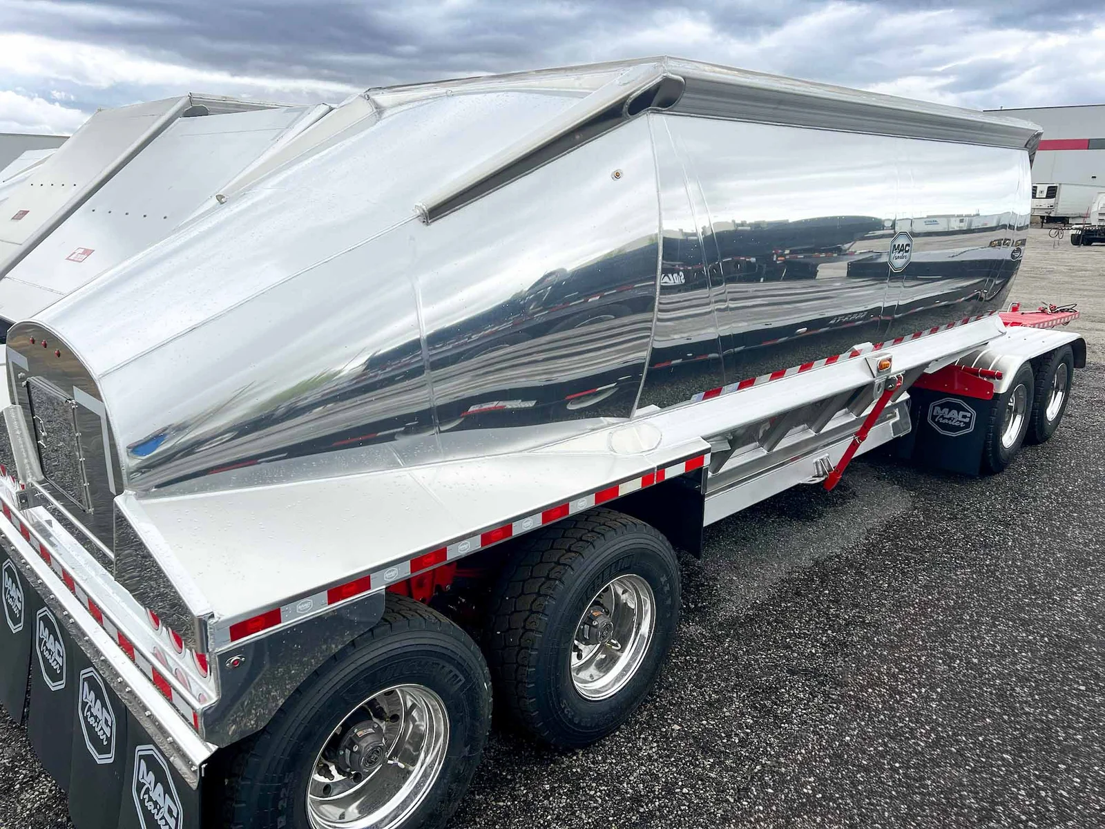 2027 MAC Bullet bottom dump trailer built for construction applications with aluminum construction and 22 cubic yard capacity. Equipped with air disc brakes, four axles, spring suspension, Tiremaax CP tire inflation system, Alcoa aluminum wheels, and reinforced hopper construction.\n\nSpecs:\n\nTrailer Type: Bottom Dump Trailer\nModel: Bullet\nLength: 31'\nCapacity: 22 Cu. Yds.\nBrakes: Air Disc Brakes\nAxles: 4\nSuspension: Spring\nSuspension Style: Fixed\nTurntable Tandem Axle Dolly\n174-1/2" from Apron to Pintle Eye\nLightweight Corner Fillets\nReinforced Front & Rear Hopper Ends\nGate Opening: 46"W x 1026"L\nSupply Cab Control Wiring Kit\nHutch 9700 Springride Suspension\n2S/2M ABS\nTiremaax CP Tire Inflation System\nAlcoa Aluminum Wheels\nTires: Michelin XZY3 18 Ply\nDust Shields\nOscillating Tapered Kingpin Plate\n\nMountain West Utility Trailer offers financing and trailer rentals. Call us at 801-973-4040.
