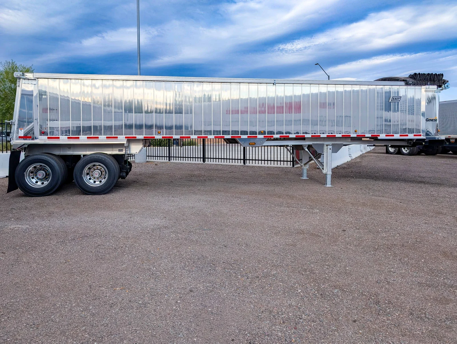 This 2026 East aluminum trailer brings lightweight efficiency and serious durability to the jobsite or highway. With a 96" wide frame and all-aluminum construction, it's engineered for corrosion resistance, reduced tare weight, and maximum payload potential. Outfitted with aluminum/steel wheels and air ride suspension on a slider axle, it’s designed to adapt to the load and terrain while keeping your operation smooth and fuel-efficient. Whether you're hauling materials or freight, this trailer is a smart addition to any fleet looking for long-term ROI. Mountain West Utility Trailer offers financing and trailer rentals.