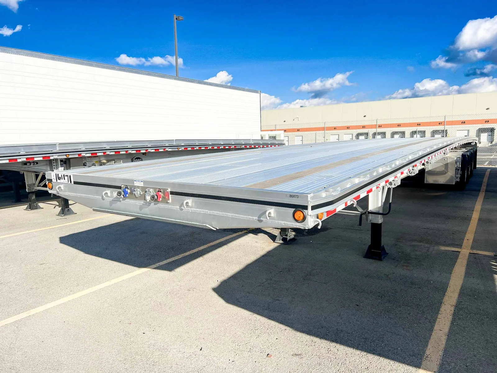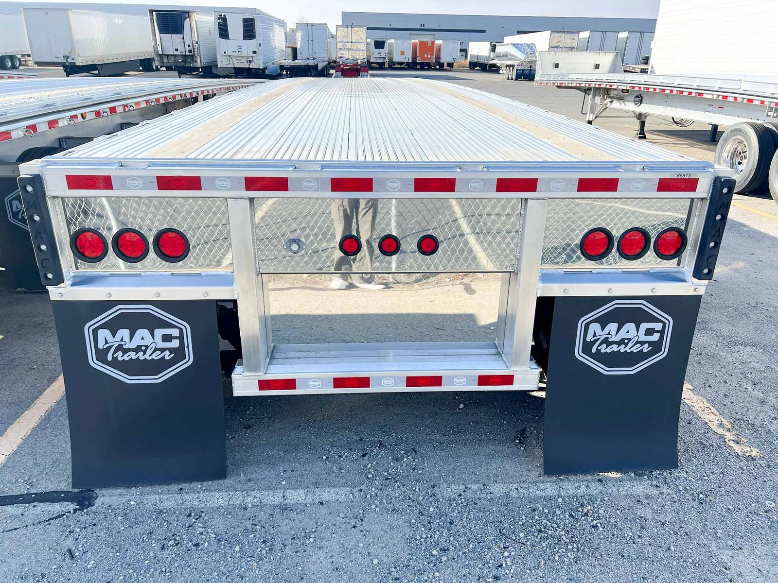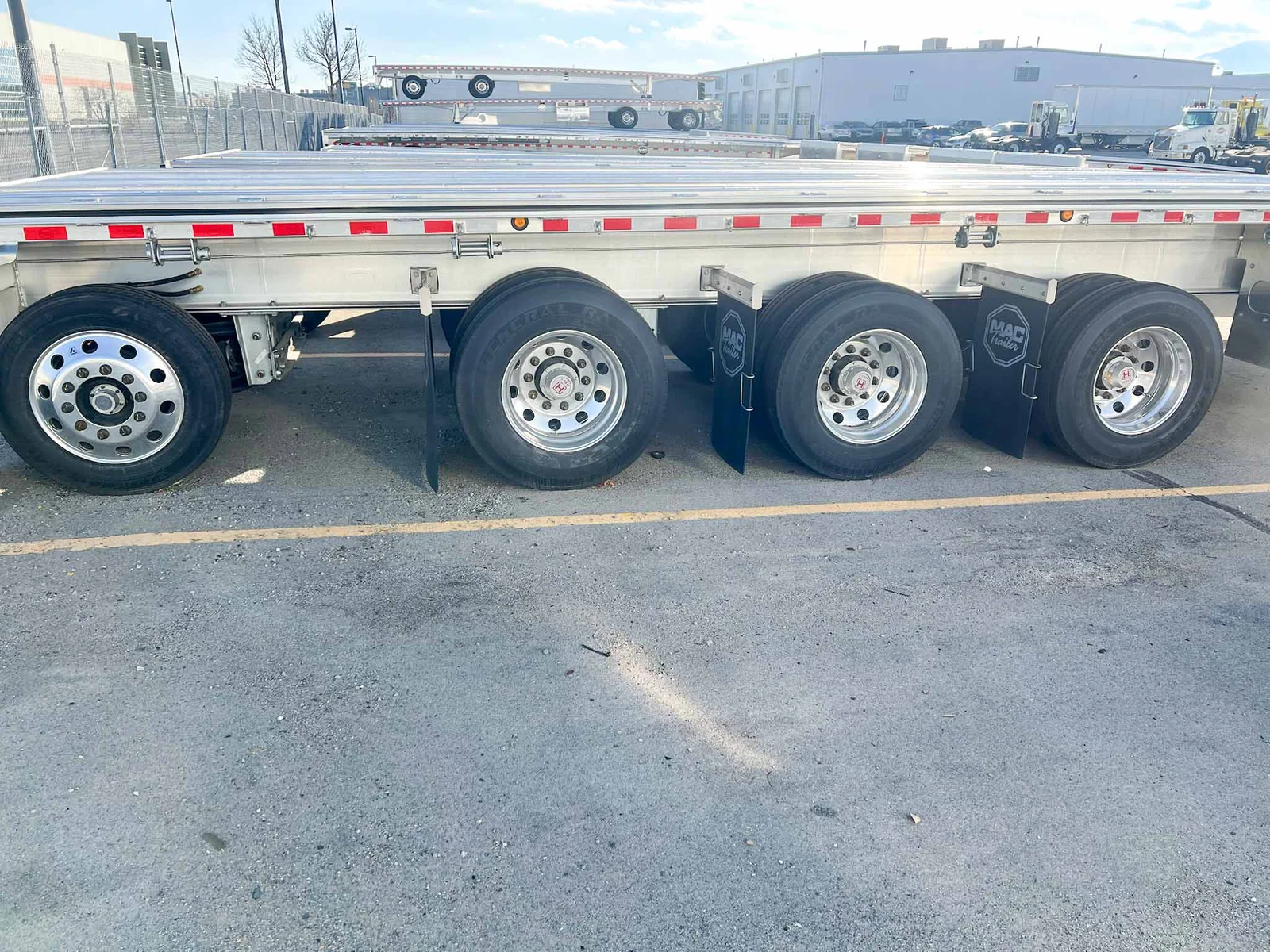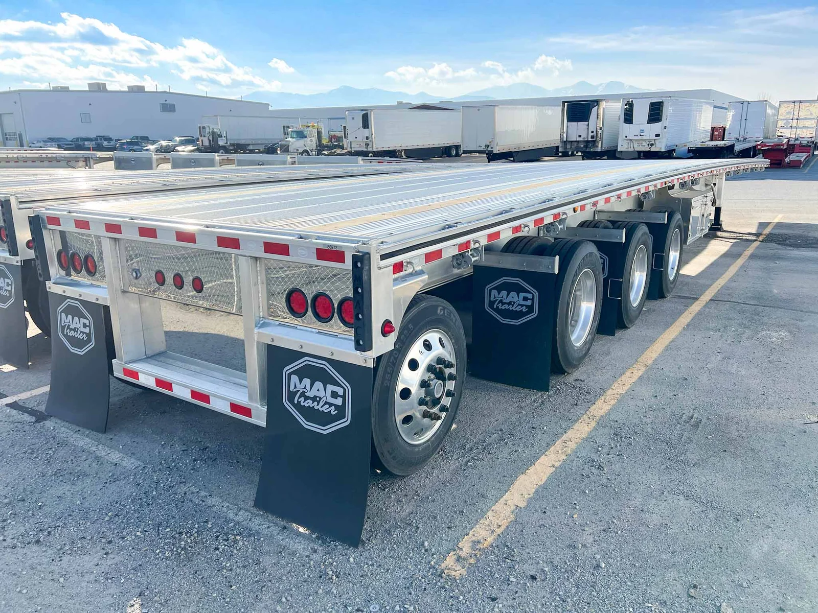 This 2026 MAC flatbed trailer is a heavy-duty quad-axle aluminum platform built for high-capacity freight, equipped with air ride suspension and extensive load-securement features.\n\nSpecifications:\n\nTrailer Type: Flatbed trailer\n\nLength: 53'\n\nAluminum composition\n\nAxles: 4 (Axle #1 lift; Axles #2–3 fixed; Axle #4 steerable lift)\n\nSuspension: Hendrickson INTRAAX AANT-23K air ride\n\nSuspension Style: Fixed\n\nFloor: Aluminum\n\nBrakes: Drum brakes\n\nKey Features:\n\n107K GVWR\n\nDouble pipe spools & HD rub rail\n\nDual wood nailers\n\nDouble-L sliding winch track with (20) galvanized sliding 3-bar winches\n\nJ-hook system & tie bars on both sides\n\n(7) LED side lights & 3-3-3 rear lighting\n\nReverse-A-Matic valve\n\n295/75R22.5 General RA 16-ply tires\n\nTube-style document holder\n\nAdditional Oregon-compliant flaps\n\nRope hooks every 24" on both sides\n\n(2) 24" x 24" x 60" aluminum toolboxes (one on each side)\n\nSection ratings: 60K @ 4’, 65K @ 10’, 70K @ 20’, 100K @ 48’\n\nMountain West Utility Trailer offers financing and trailer rentals. Call us at 801-973-4040.