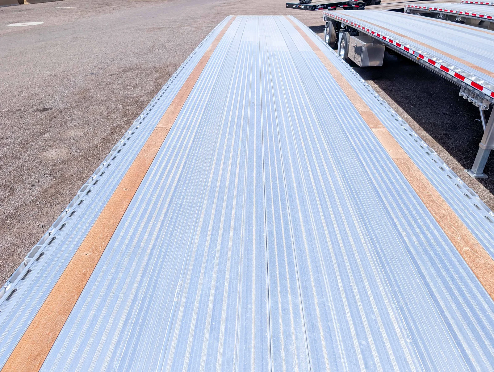 STOCK East Beast II Aluminum Flatbed. (9) LED Lights, 22" Crossmember spacing, 2-nailer, Double L Siderail, (20) total winches, (2) 24 X 24 X 60 aluminum double door toolboxes,Cal-legal slider, front lift-axle, 49" fifthwheel height, Tiremaax pro w/ integral checkport