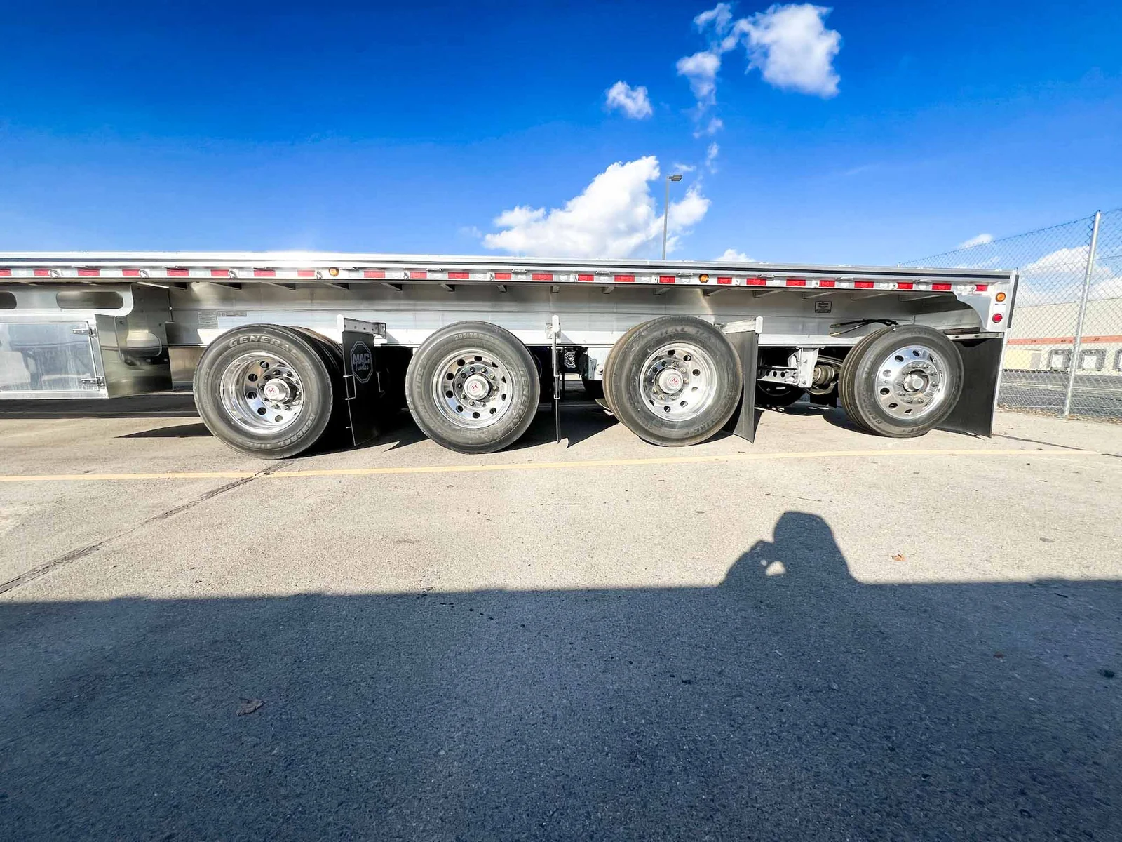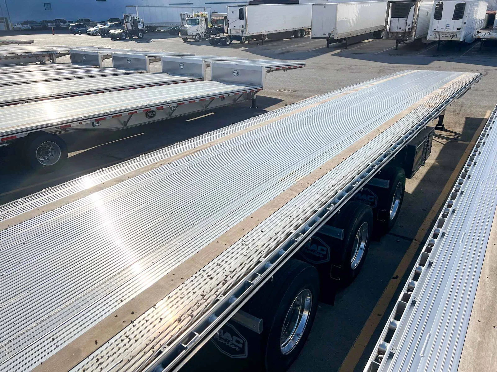 This 2026 MAC flatbed trailer delivers heavy-duty performance with a quad-axle air-ride setup, aluminum construction, and a full suite of load-securement features built for high-capacity hauling.\n\nSpecifications:\n\nTrailer Type: Flatbed trailer\n\nLength: 53'\n\nAluminum composition\n\nAxles: 4 (Axle #1 lift; Axles #2–3 fixed; Axle #4 steerable lift)\n\nSuspension: Hendrickson INTRAAX AANT-23K air ride\n\nFloor: Aluminum\n\nBrakes: Drum brakes\n\nKey Features:\n\n107K GVWR\n\nDouble pipe spools & HD rub rail\n\nDual wood nailers\n\nDouble-L sliding winch track with (20) galvanized sliding 3-bar winches\n\nJ-hook system & tie bars on both sides\n\n(7) LED side lights & 3-3-3 rear lighting\n\nReverse-A-Matic valve\n\n295/75R22.5 General RA 16-ply tires\n\nTube-style document holder\n\nAdditional Oregon-compliant axle flaps\n\nRope hooks every 24" on both sides\n\n(2) 24"x24"x60" aluminum toolboxes (one per side)\n\nSection ratings: 60K @ 4’, 65K @ 10’, 70K @ 20’, 100K @ 48’\n\nMountain West Utility Trailer offers financing and trailer rentals. Call us at 801-973-4040.