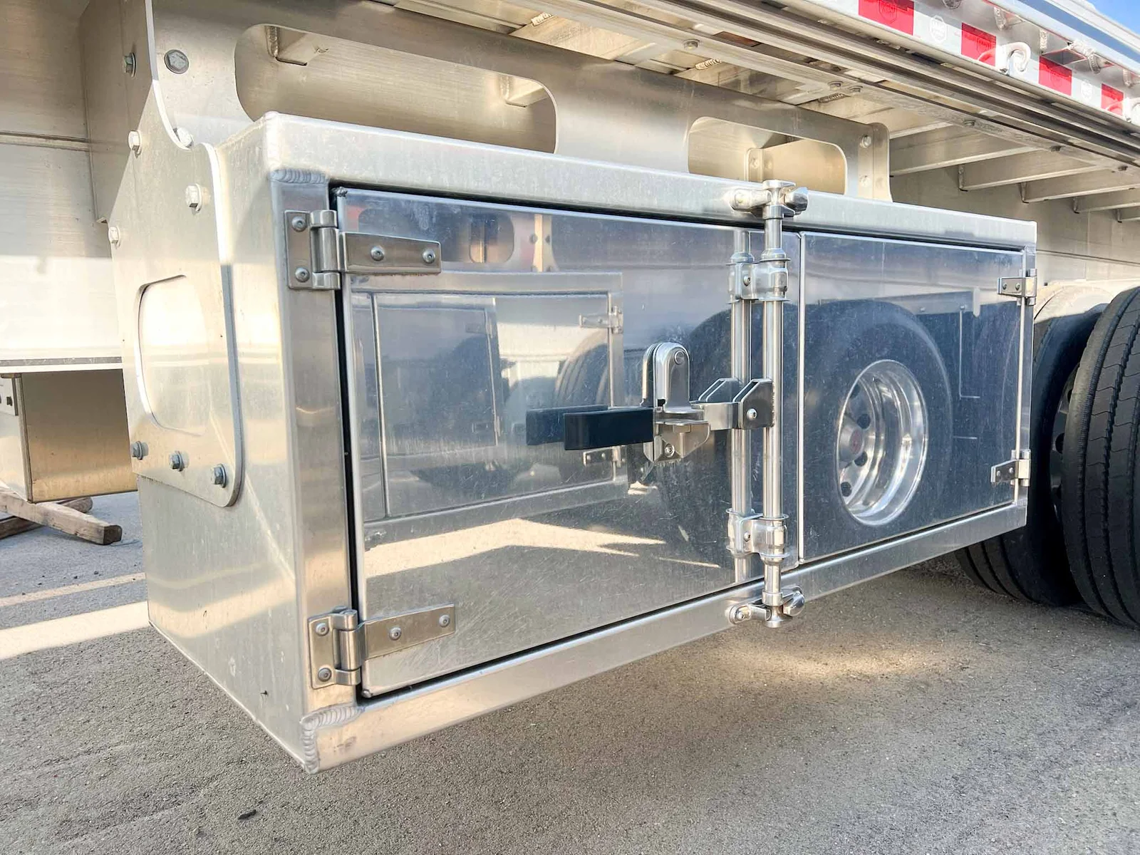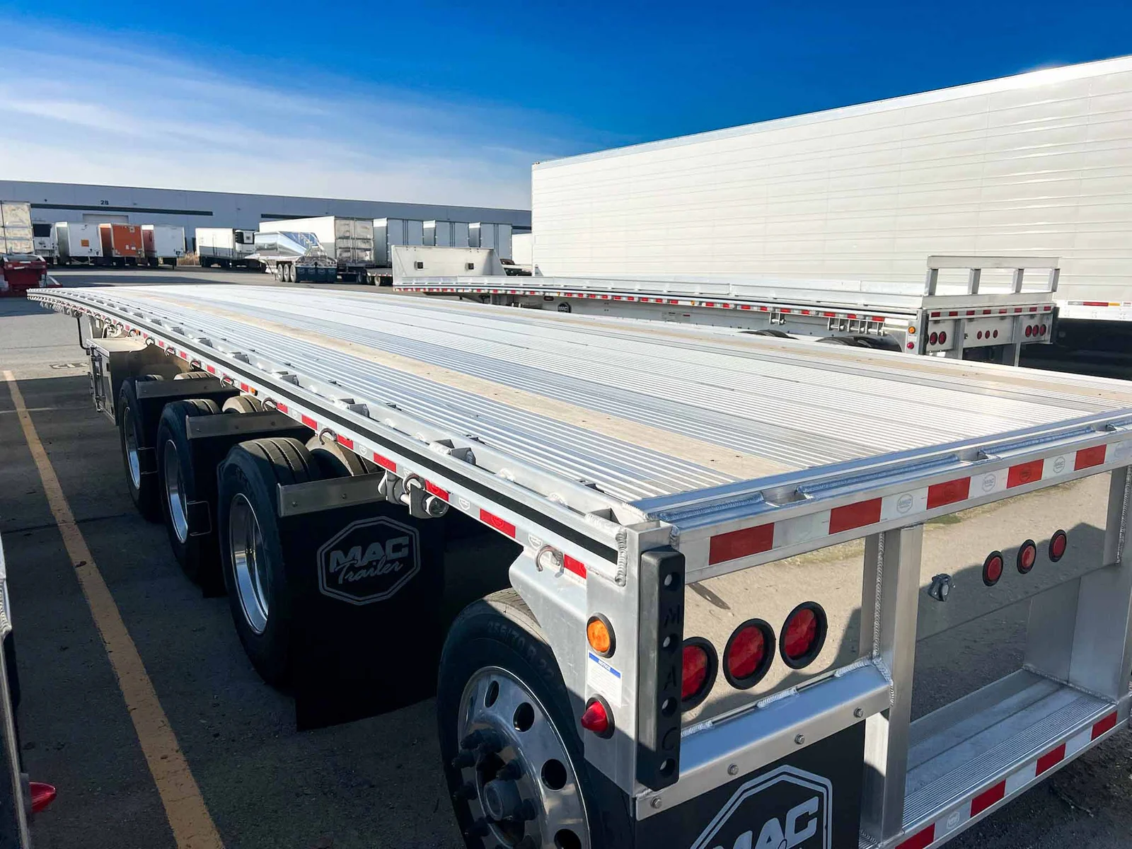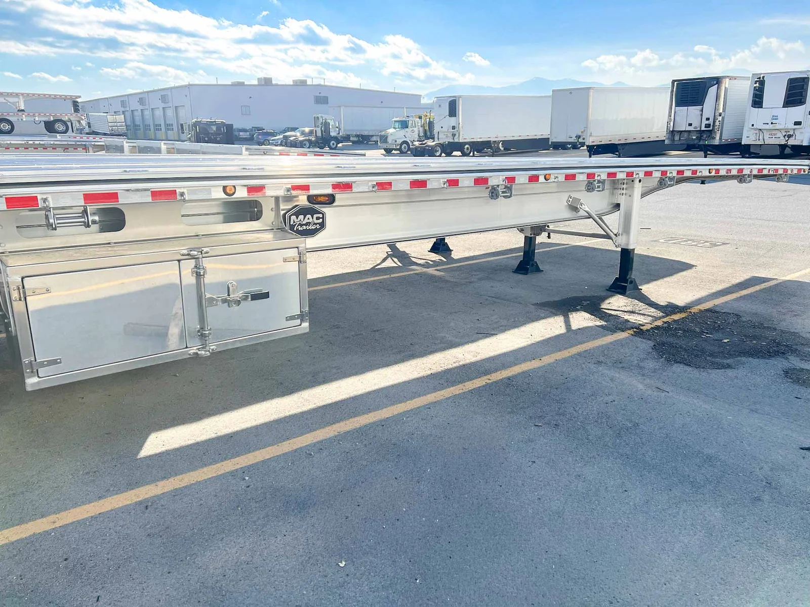 This 2026 MAC flatbed trailer is a heavy-duty quad-axle aluminum platform built for high-capacity freight, equipped with air ride suspension and extensive load-securement features.\n\nSpecifications:\n\nTrailer Type: Flatbed trailer\n\nLength: 53'\n\nAluminum composition\n\nAxles: 4 (Axle #1 lift; Axles #2–3 fixed; Axle #4 steerable lift)\n\nSuspension: Hendrickson INTRAAX AANT-23K air ride\n\nSuspension Style: Fixed\n\nFloor: Aluminum\n\nBrakes: Drum brakes\n\nKey Features:\n\n107K GVWR\n\nDouble pipe spools & HD rub rail\n\nDual wood nailers\n\nDouble-L sliding winch track with (20) galvanized sliding 3-bar winches\n\nJ-hook system & tie bars on both sides\n\n(7) LED side lights & 3-3-3 rear lighting\n\nReverse-A-Matic valve\n\n295/75R22.5 General RA 16-ply tires\n\nTube-style document holder\n\nAdditional Oregon-compliant flaps\n\nRope hooks every 24" on both sides\n\n(2) 24" x 24" x 60" aluminum toolboxes (one on each side)\n\nSection ratings: 60K @ 4’, 65K @ 10’, 70K @ 20’, 100K @ 48’\n\nMountain West Utility Trailer offers financing and trailer rentals. Call us at 801-973-4040.