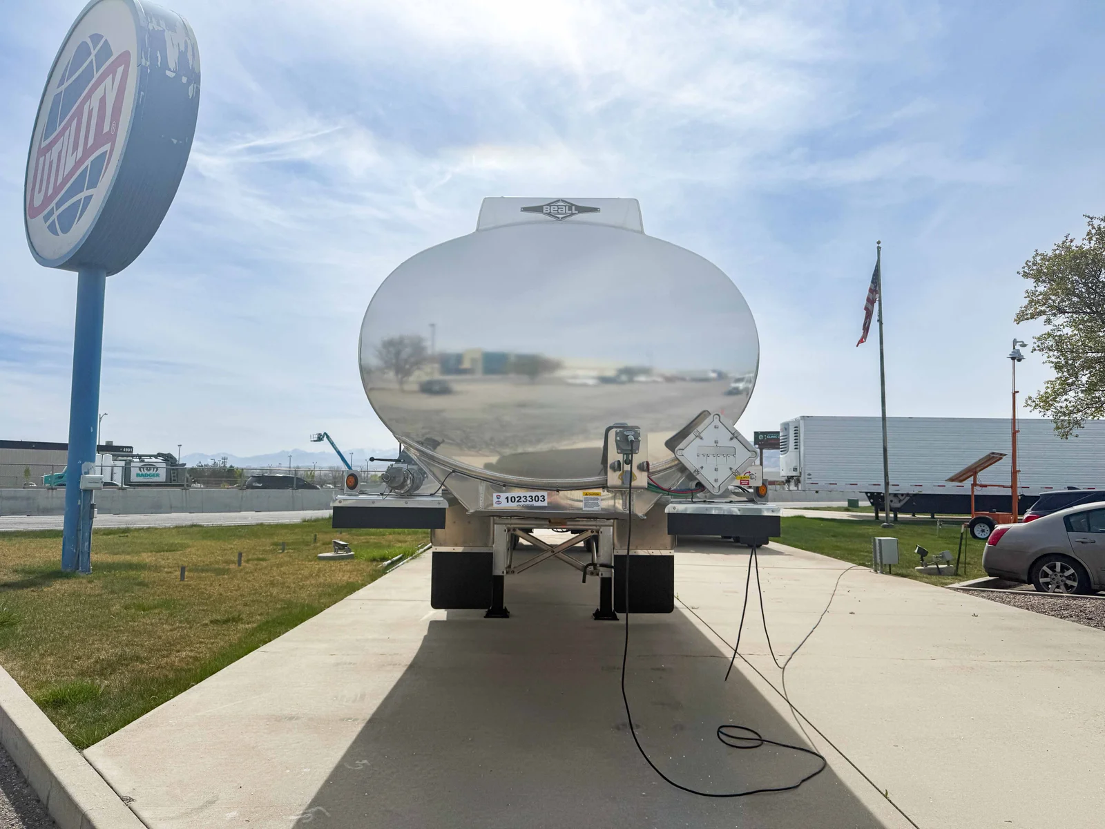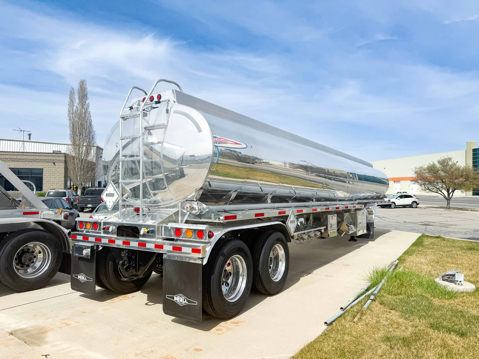 This 2027 tanker trailer is equipped with Bendix disc brakes, air ride suspension, and a fixed tandem configuration, built on an aluminum frame with a 9,600-gallon 3-compartment setup and bottom load system. The multi-compartment design with integrated loading and discharge components supports efficient fuel handling.\n\n• Year: 2027\n• Type: Tanker trailer\n• Make: Beall\n• Capacity: 9,600 Gallons\n• Compartments: 3 (4,800 / 1,300 / 3,500)\n• Suspension: Air Ride\n• Suspension Style: Fixed\n• Axles: Tandem\n• Composition: Aluminum\n• Brakes: Disc\n• Loading System: Bottom Load\n• API Heads: 4" Bayco On/Off\n• Piping: 4" Teed Curbside and Roadside\n• Suction Line: 3" Front to Rear\n• Vapor Recovery: Equipped\n• Hose Tray: 18" x 24' Curbside\n• Toolbox: Aluminum\n• Landing Gear: Aluminum\n\nThis trailer is available now at our Salt Lake City, Utah location. Mountain West Utility Trailer offers financing and trailer rentals. Call us at 801-973-4040.