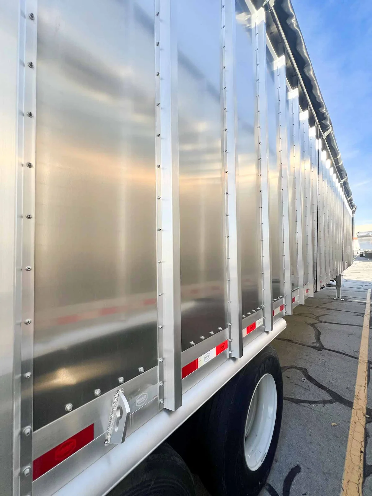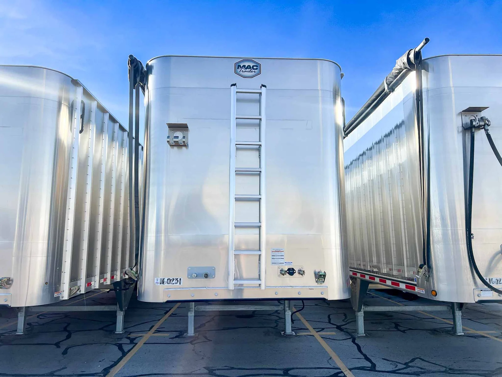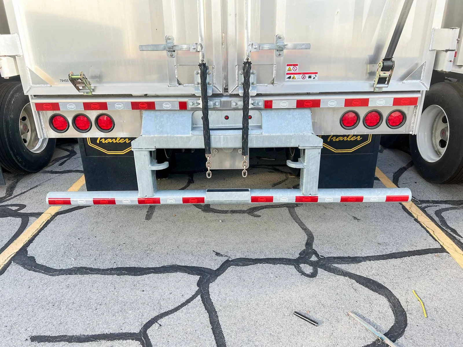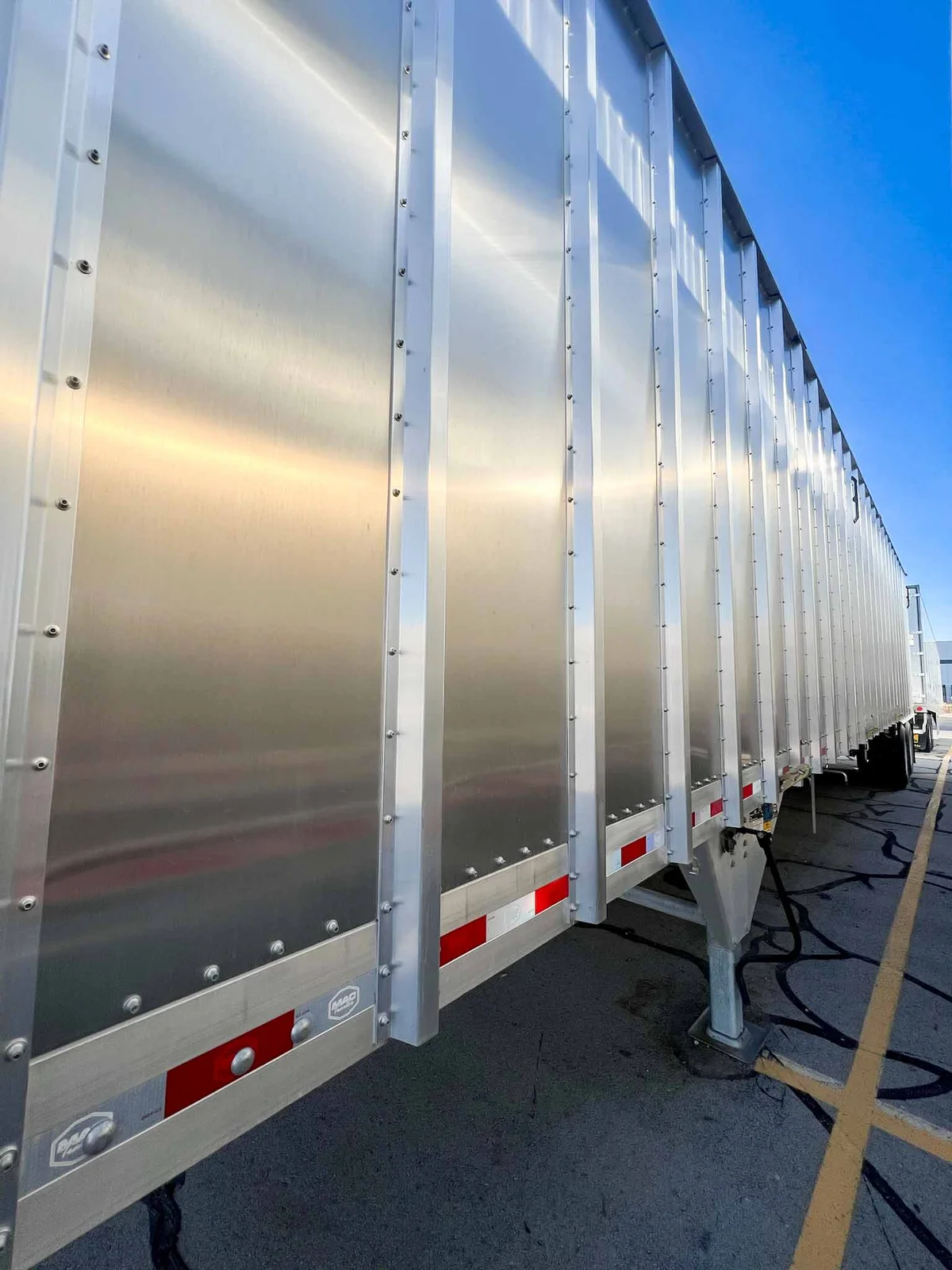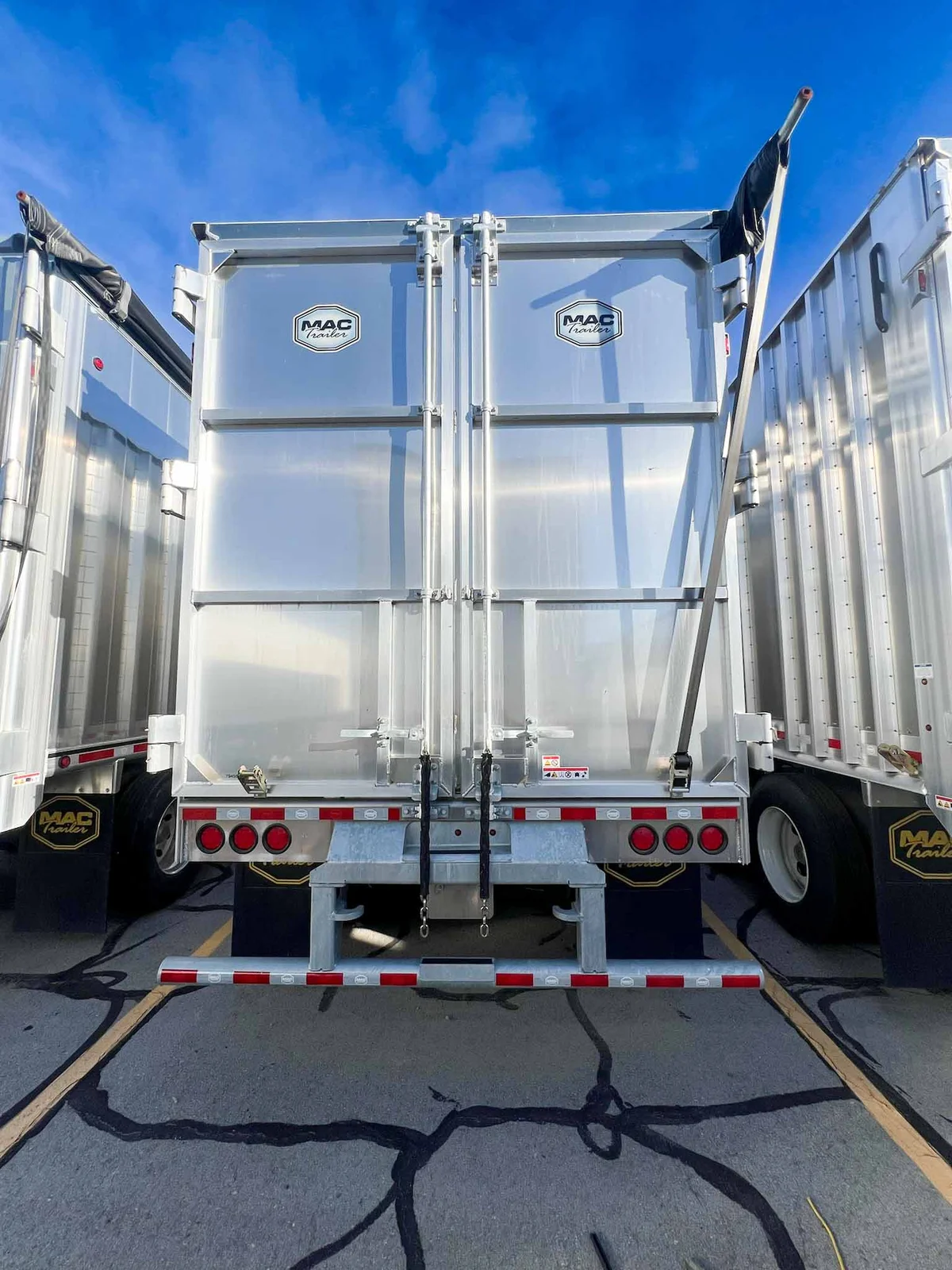 MW Trailer description said:\n\nThis new 2026 MAC transfer trailer is engineered for high-volume refuse or chipper applications. Located in Salt Lake City, it offers a 128-cubic yard capacity with heavy-duty specs, including a KEITH triple ridge floor and Hendrickson air ride suspension.\n\nKey Specs:\n\n48' Length\n\n102" Width\n\n13'6" Overall Height\n\n128 Cubic Yard Capacity\n\nAluminum Composition\n\nHendrickson Air Ride Suspension\n\nTandem Axle\n\nKEITH #2299 ½” Triple Ridge Floor – 25 Slats, 3" Drive Units\n\nManual Strap & Ratchet Mesh Tarp\n\nSheet & Post Design\n\nRight Weigh Load Scale\n\nStep Ladder at Front\n\nDouble Swing Barn Doors\n\nGalvanized Rear Bumper Assembly\n\nSafety Chains\n\n11R22.5 Goodyear Tires\n\nSteel Wheels\n\nApprox. Weight: 15,410 lbs ±3%\n\nFET Included\n\nMountain West Utility Trailer offers financing and trailer rentals. Call us at 801-973-4040.