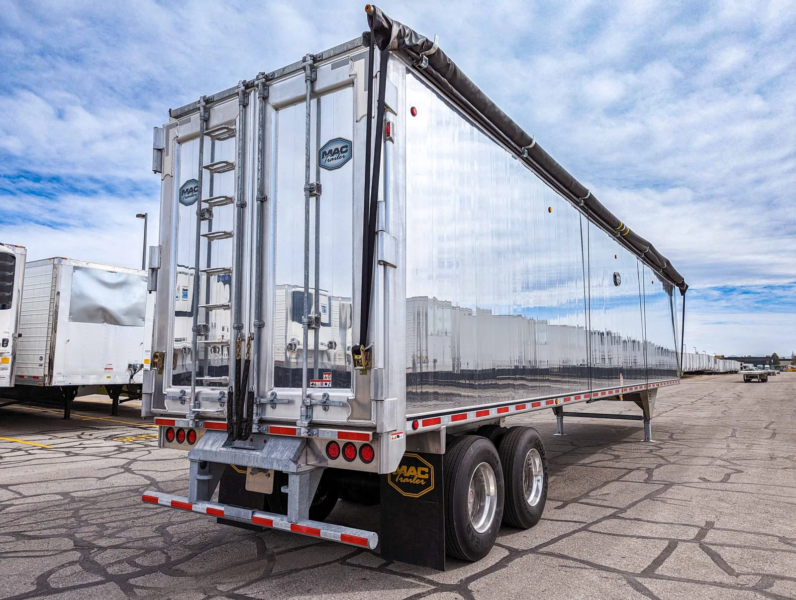 Heavy-duty 48’ x 102” MAC Live Floor trailer built for construction use. Stands at 13'6" overall height with a 128-cubic-yard capacity. Equipped with KEITH #2299 ½” Triple Ridge floor, 25 slats, and 3” drive units. Includes hydraulic lines, a manual strap & ratchet mesh tarp, and a step ladder at the front and rear. Double-wall design with a 2-1/4” HD top rail and galvanized rear bumper assembly. Hendrickson air ride suspension, tandem axle, and load scale for optimal performance. Features 11R22.5 Goodyear Marathon tires, aluminum exterior, steel interior wheels, swing barn doors, and galvanized components. Approximate weight: 18,570 lbs. Mountain West Utility Trailer offers financing and trailer rentals. Call us at 801-973-4040.