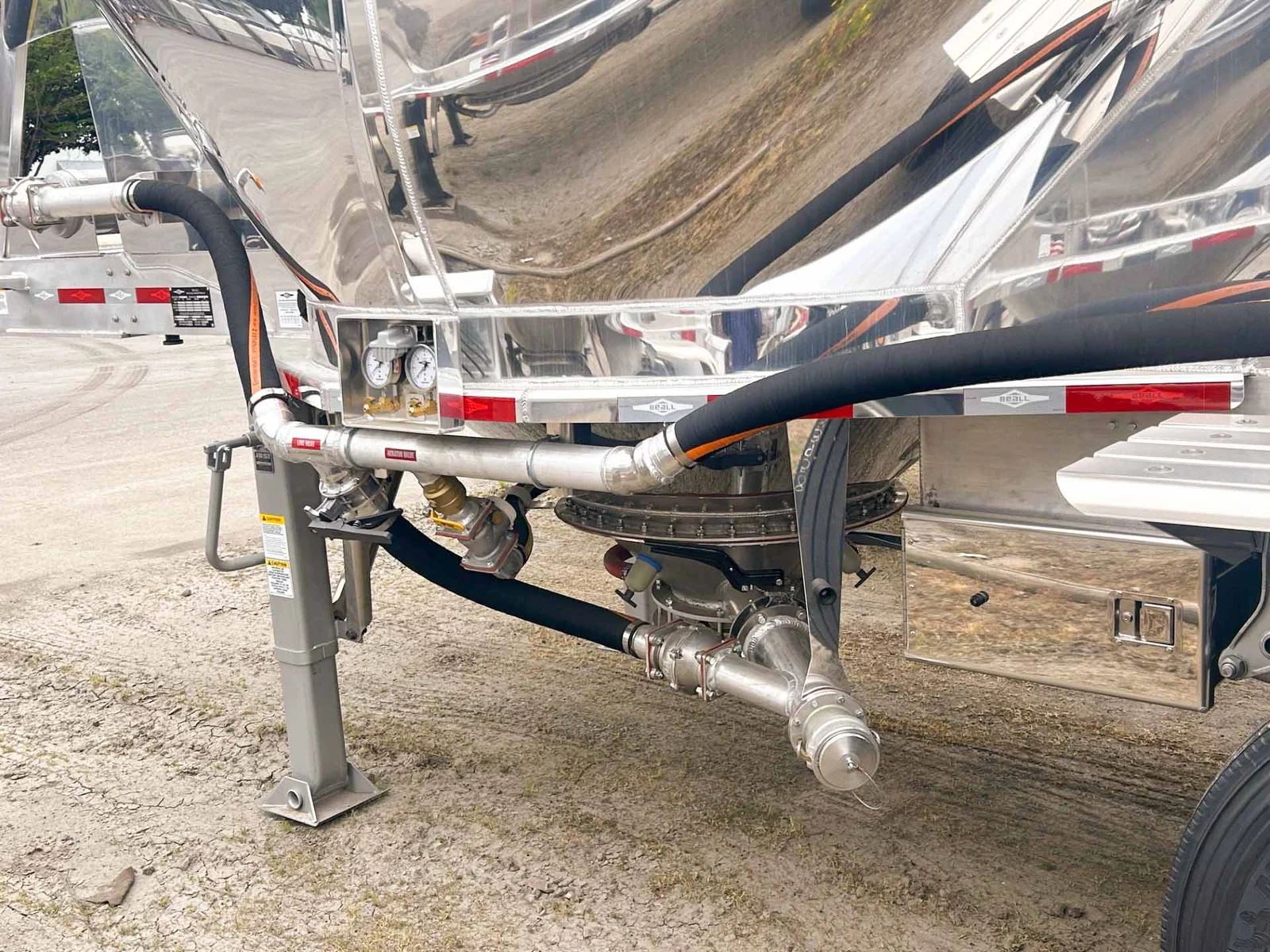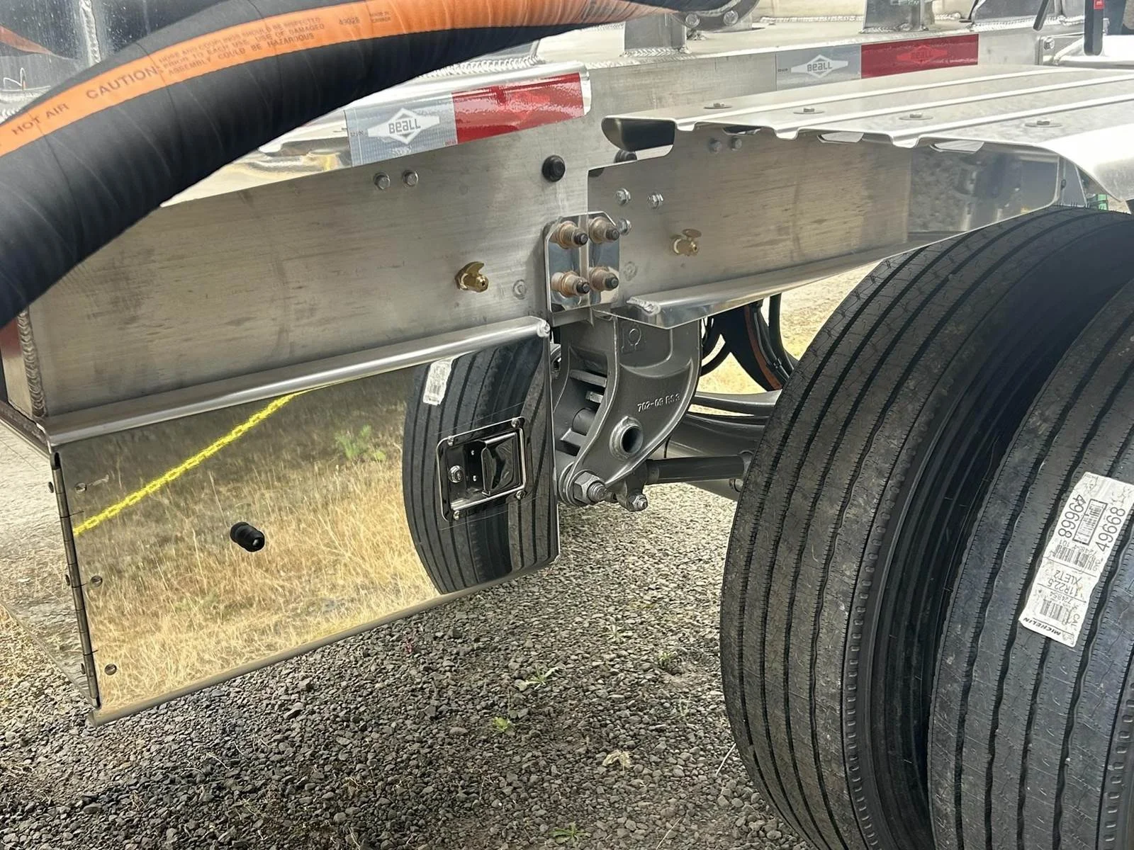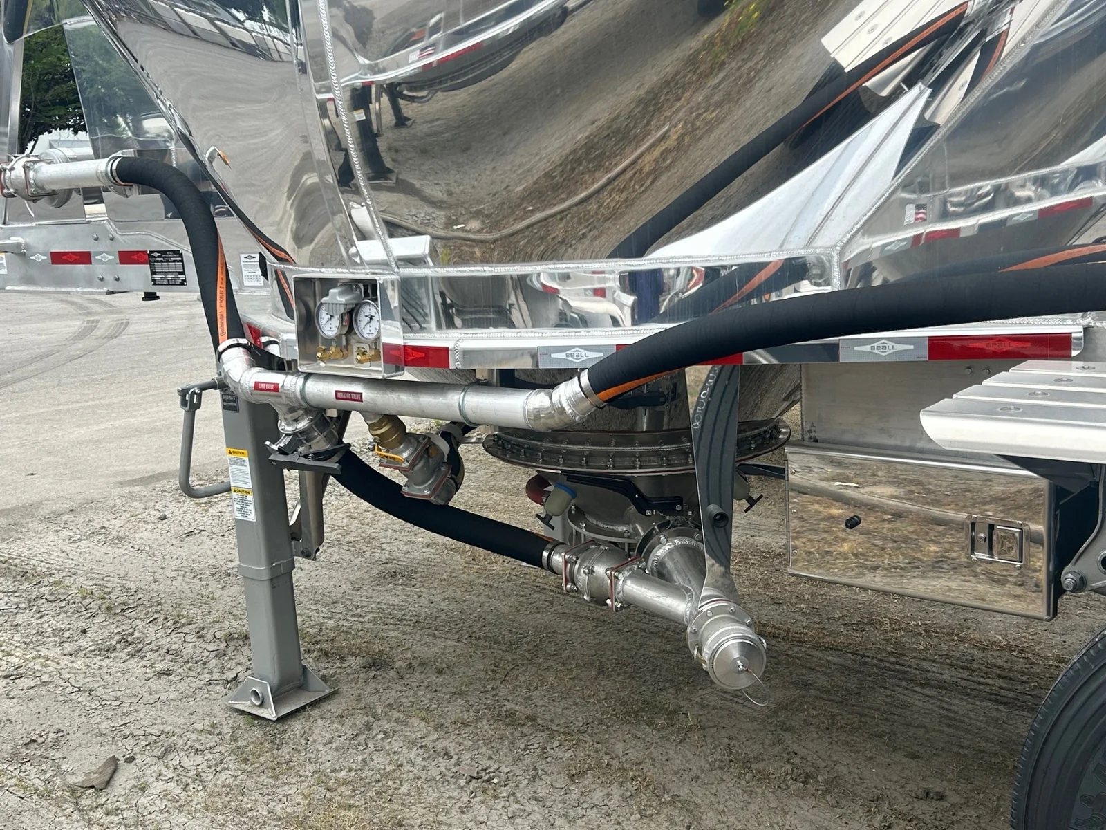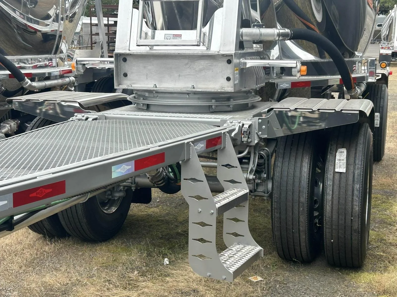 2026 BEALL 550 DRY BULK 3-AXLE SET\n\nProduct Details: \n\n1-Axle Lead Trailer\n550 Cubic Feet, Aluminum Construction, 102"W, States of Operation: California, Nevada & Arizona, Aeration - (3) Flow Cones, 3" Silencer installed downstream on street side inlet, 2" Check Valve (No Top Air), 5" x 4" Aluminum Y-Branch w/ 5" Butterfly Valve angled 45 degrees to street side rear, Terminate w/ 4" female Coupler & Plug, Single Axle, Hutch 9700 Spring Ride Suspension, Hendrickson P-Spindle Axle, Hendrickson MAXX22T Air Disc Brakes, Hendrickson Tiremaxx PRO Tire Inflation, 11R22.5 Michelin X-Line Energy T2 Tires, Aluminum Wheels, (2) Ribbed Aluminum Fenders, JOST Two-Speed Landing Gear, Pintle Hitch Assy., Truck-Lite LED Lighting.\n\n2-Axle Pup Trailer\n550 Cubic Feet, Aluminum Construction, 102"W, States of Operation: California, Nevada & Arizona, Aeration - (3) Flow Cones, 2" Check Valve (No Top Air), 5" x 4" Aluminum Y-Branch w/ 5" Butterfly Valve angled 45 degrees to street side front, Terminate w/ 4" female Coupler & Plug, Single Axle, Turntable Dolly, Double Ball Bearing Turntable, Hutch 9700 Spring Ride Suspension, Hendrickson P-Spindle Axle, Hendrickson MAXX22T Air Disc Brakes, Hendrickson Tiremaxx PRO Tire Inflation, 11R22.5 Michelin X-Line Energy T2 Tires, Aluminum Wheels, (4) Ribbed Aluminum Fenders, Truck-Lite LED Lighting.\n\nOverall Length for set - 48'