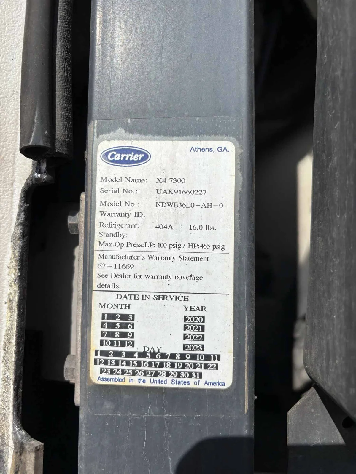 CARRIER 7300 WITH CHROME, OWNER OPERATOR SPEC REEFER WITH 2-5-5-5 LED CLEARANCE,TIRE INFLATION, TRANTEX SKIRTS, SS BUMPER, SS DOORS, SS VENT, SS LOCK RODS, 16" ALUM WEARBANDS, .080 VERSITEX LINER,