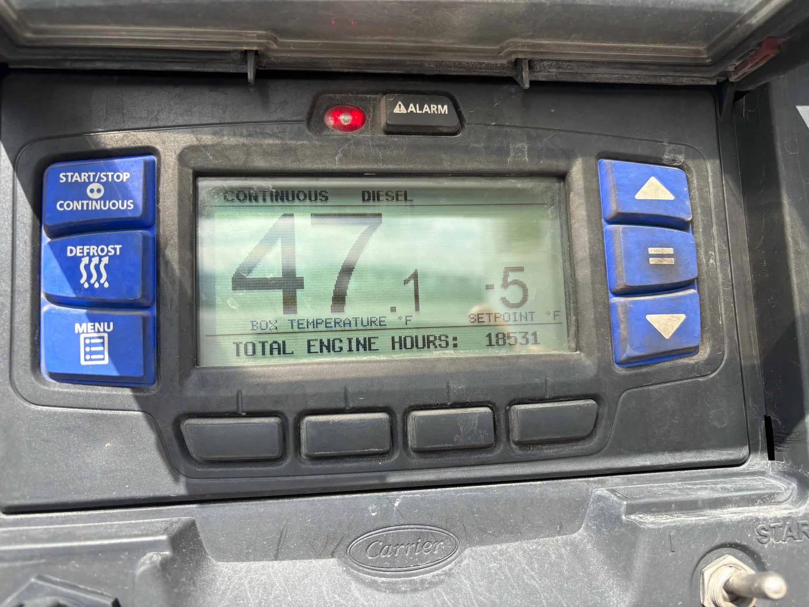 CARRIER 7300 WITH CHROME, OWNER OPERATOR SPEC REEFER WITH 2-5-5-5 LED CLEARANCE,TIRE INFLATION, TRANTEX SKIRTS, SS BUMPER, SS DOORS, SS VENT, SS LOCK RODS, 16" ALUM WEARBANDS, .080 VERSITEX LINER,