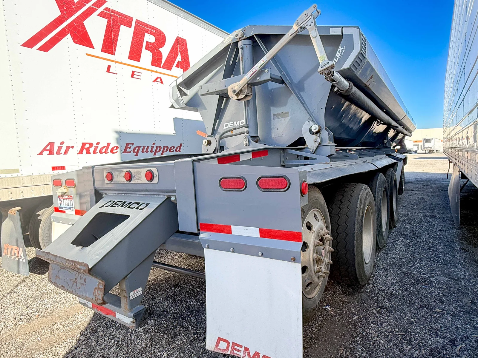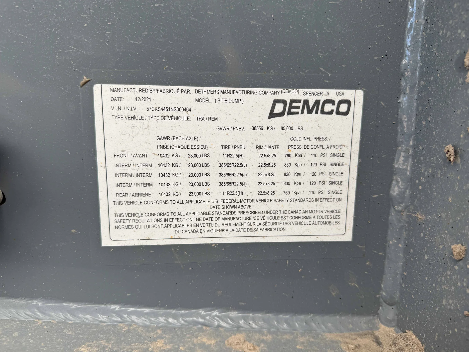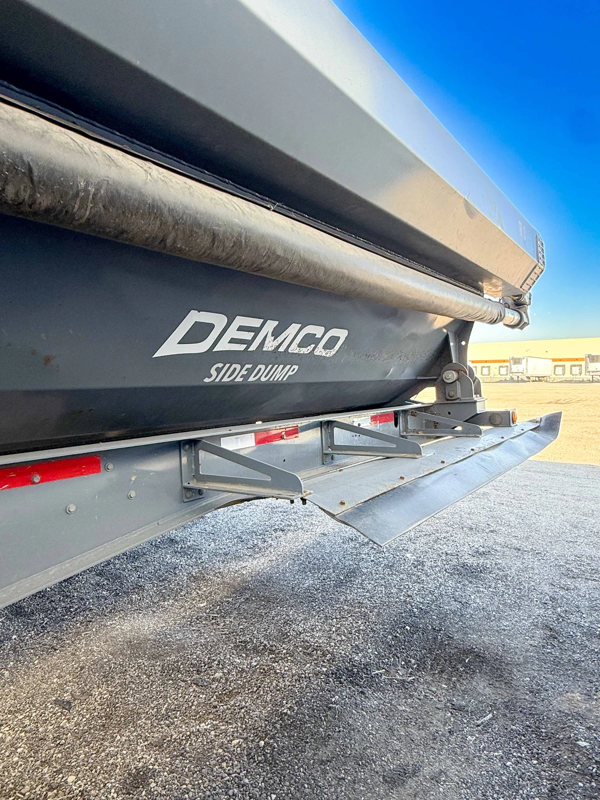This 2022 Demco Side Dump trailer is engineered for rugged construction applications, featuring a gray aluminum tub and matching gray frame. The 5-axle setup with fixed air ride suspension ensures stability and performance under heavy loads.\n\nSpecifications:\n50' Side Dump Semi-Trailer\nGray Aluminum Tub and Frame\n5 Axles\nFixed Air Ride Suspension\nAluminum Singles with 385/65R22.5 Tires\nVIN: 57CKS4451NS000464\n\nMountain West Utility Trailer offers financing and trailer rentals. Call us at 801-973-4040.