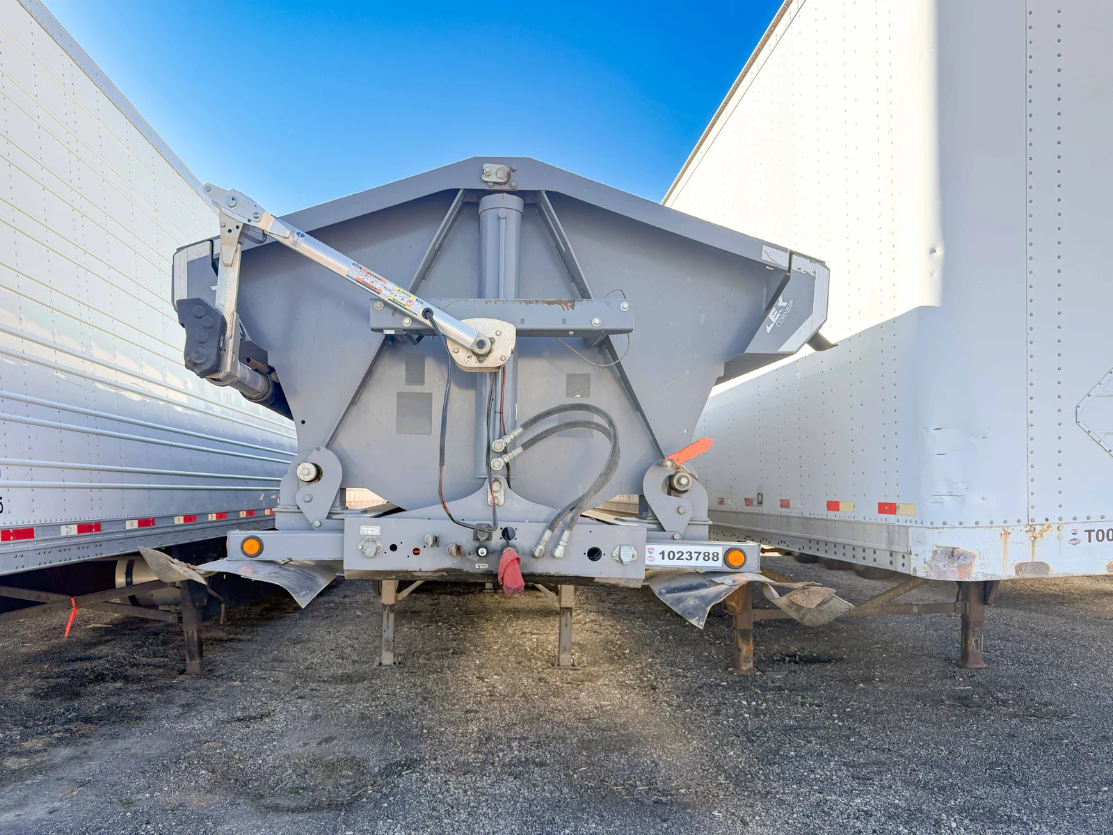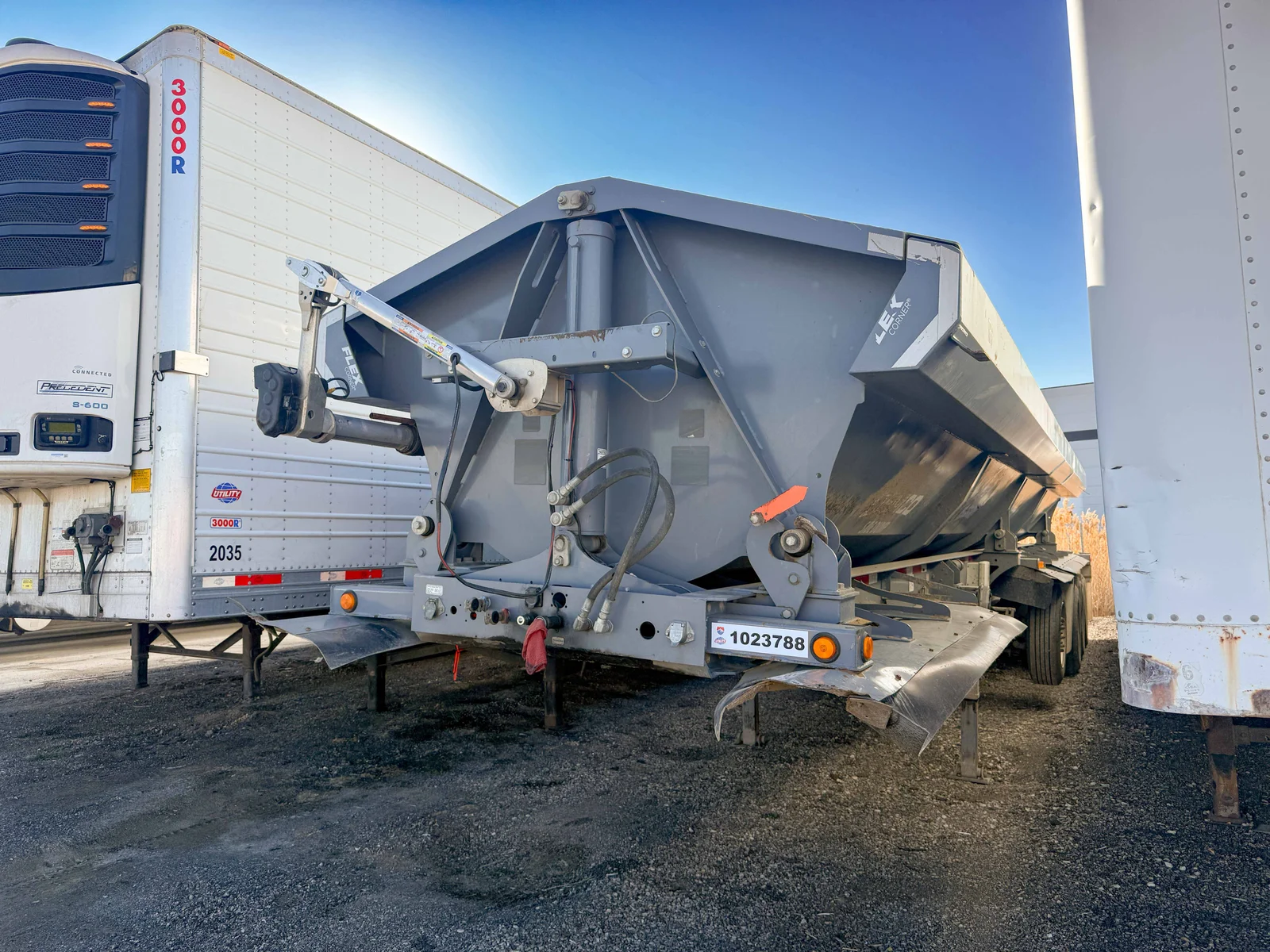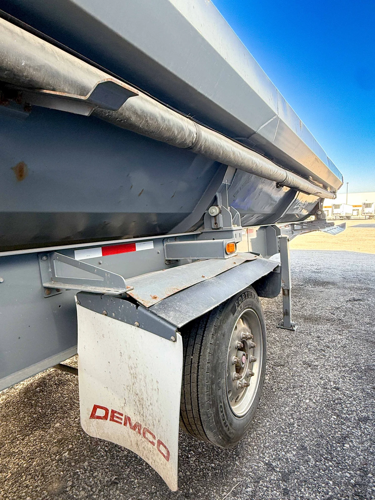 This 2022 Demco Side Dump trailer is engineered for rugged construction applications, featuring a gray aluminum tub and matching gray frame. The 5-axle setup with fixed air ride suspension ensures stability and performance under heavy loads.\n\nSpecifications:\n50' Side Dump Semi-Trailer\nGray Aluminum Tub and Frame\n5 Axles\nFixed Air Ride Suspension\nAluminum Singles with 385/65R22.5 Tires\nVIN: 57CKS4451NS000464\n\nMountain West Utility Trailer offers financing and trailer rentals. Call us at 801-973-4040.