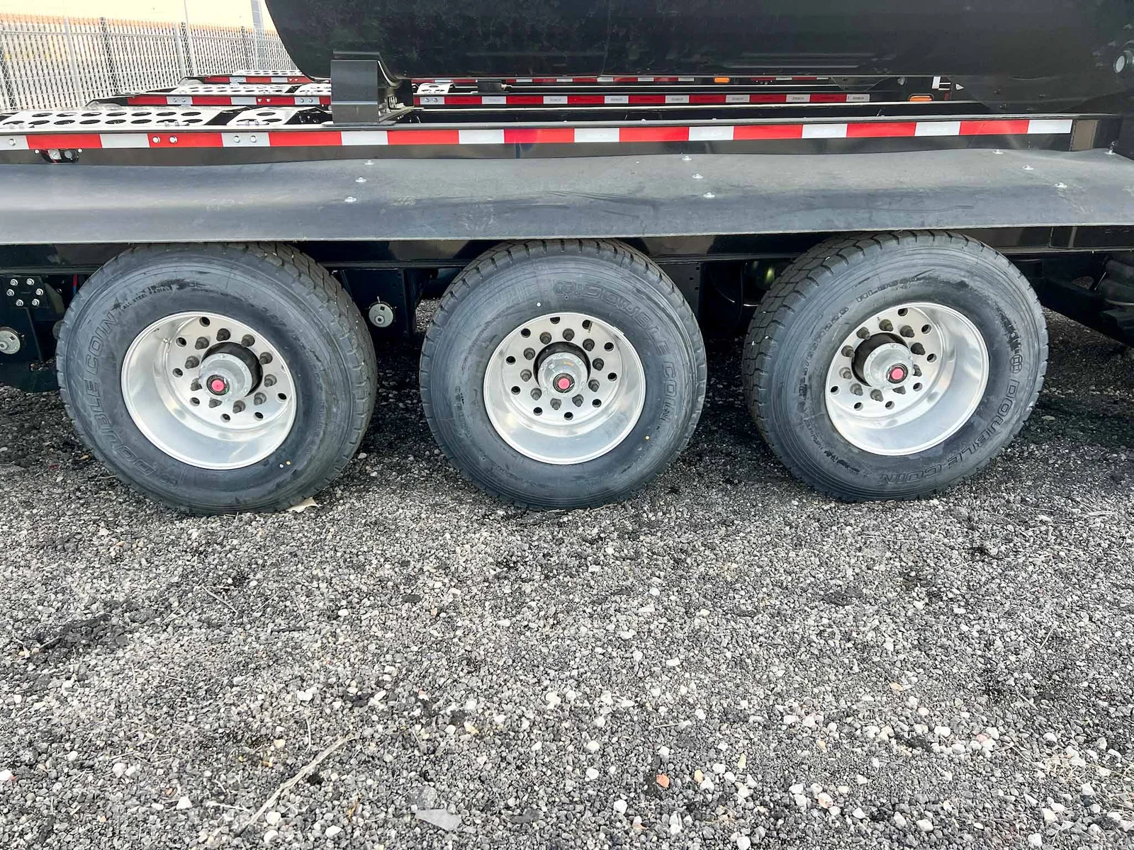 6-axle side dump semi-trailer engineered for heavy payload control. Air-ride suspension with steerable lift axles on #1, #2 & #6; #3–#5 fixed for tracking and stability. 53' overall with a 40' 3/16" HARDOX 500TUF steel tub for abrasion resistance. Aluminum single wheels. Aero Sidekick 2 electric tarp with safety switch. Two-speed landing gear, rock guard, bolt-on push block, and fender belting for jobsite protection. Equipped with drum brakes.\nMountain West Utility Trailer offers financing and trailer rentals. Call us at 801-973-4040.