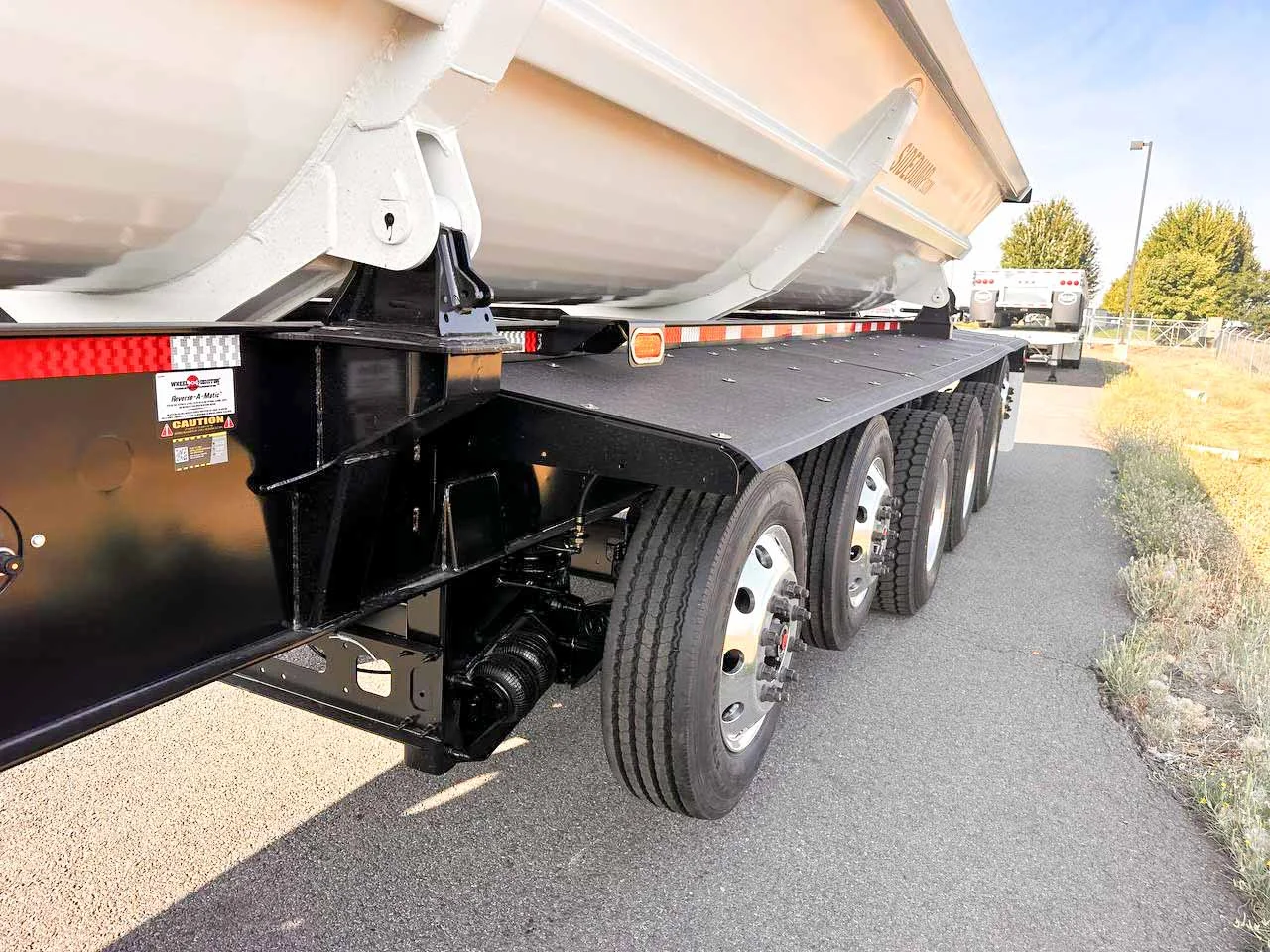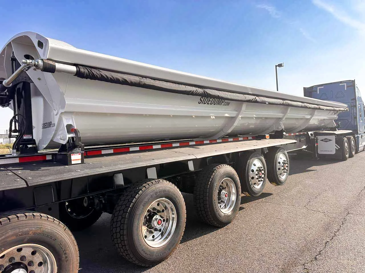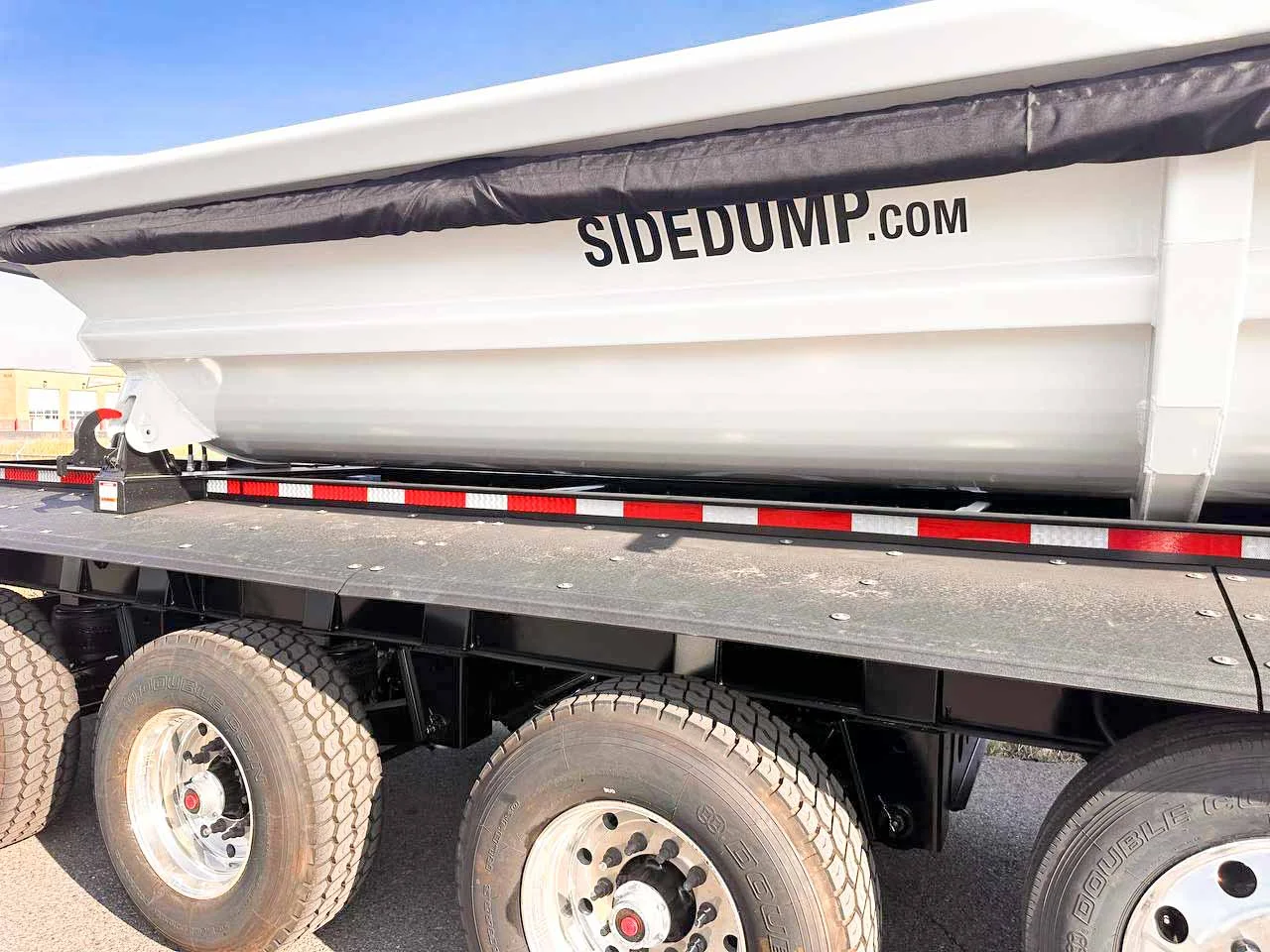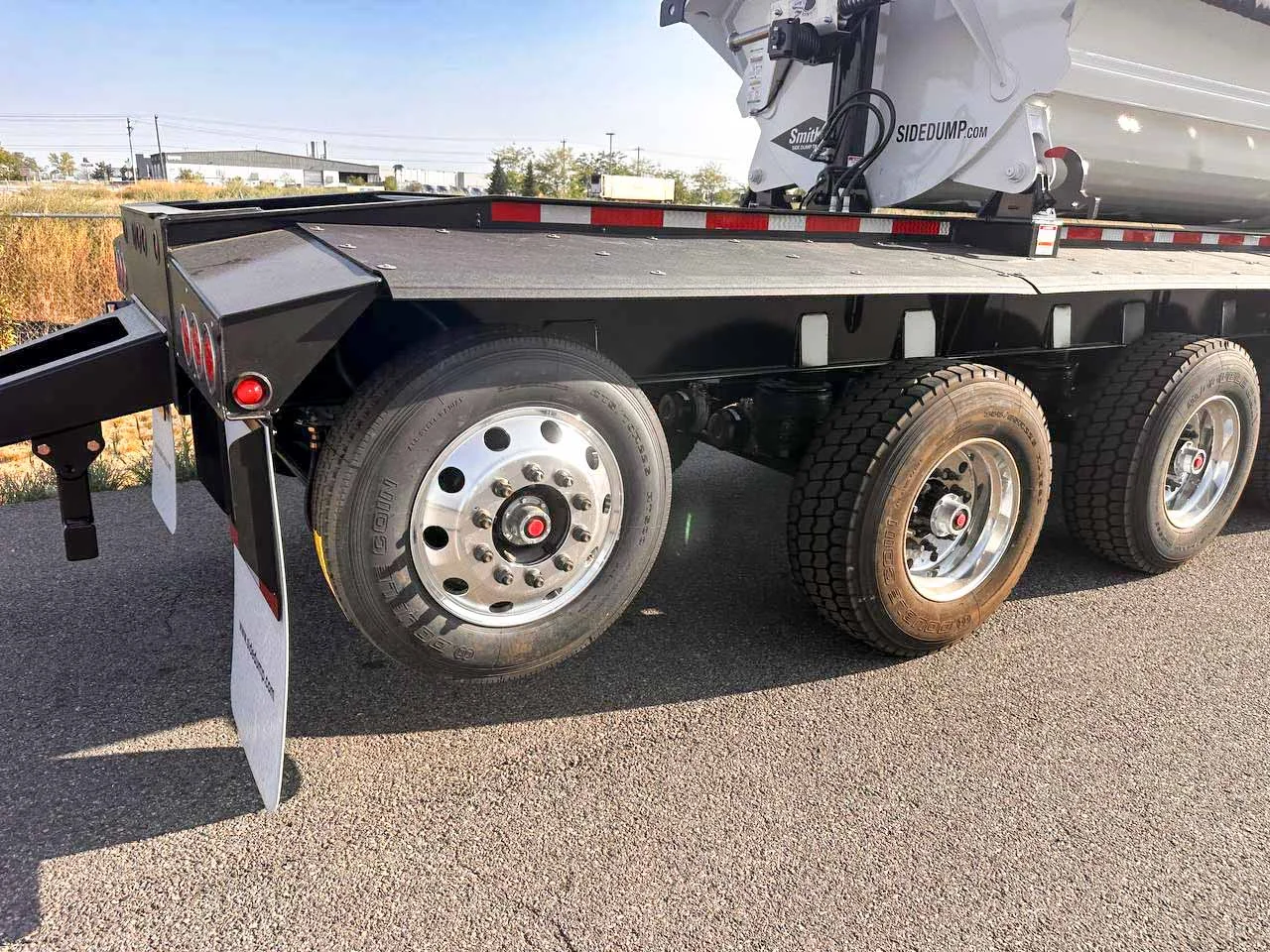 This 2026 side dump trailer is equipped with drum brakes, Ridewell RW260 air ride suspension, a 6-axle configuration with steerable lift axles, and a 40' 3/16" AR400 aluminum tub rated at 35.6 cubic yards heaped. The steerable lift setup and high-capacity tub support demanding aggregate operations.\n\n• 2026 SmithCo Side Dump Trailer\n• Aluminum Construction\n• 40' 3/16" AR400 Tub\n• 35.6 Cubic Yard Capacity Heaped\n• 6 Axles\n• Axle #1 Steerable Lift\n• Axle #2 Steerable Lift\n• Axle #3 Fixed\n• Axle #4 Fixed\n• Axle #5 Fixed\n• Axle #6 Steerable Lift\n• Ridewell RW260 Air Ride Suspension\n• Fixed Suspension Style\n• Drum Brakes\n• Aluminum Single Wheels\n• Double Coin RLB980 385/65R22.5 Tires\n• 2 Speed Landing Gear\n• 6" Hydraulic Cylinders\n• Aero SideKick 2 Electric Tarp System with Mesh Tarp\n• Tarp Lockout Safety Switch\n• Control Valve on Trailer\n• Large Liquid Filled Air Gauge\n• Grease Bank for Hydraulic Cylinders\n• LED Lighting Package\n\nThis trailer is available now at our Spokane, Washington location. Mountain West Utility Trailer offers financing and trailer rentals. Call us at (509) 321-2326.
