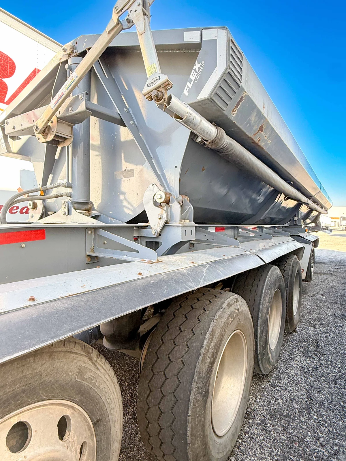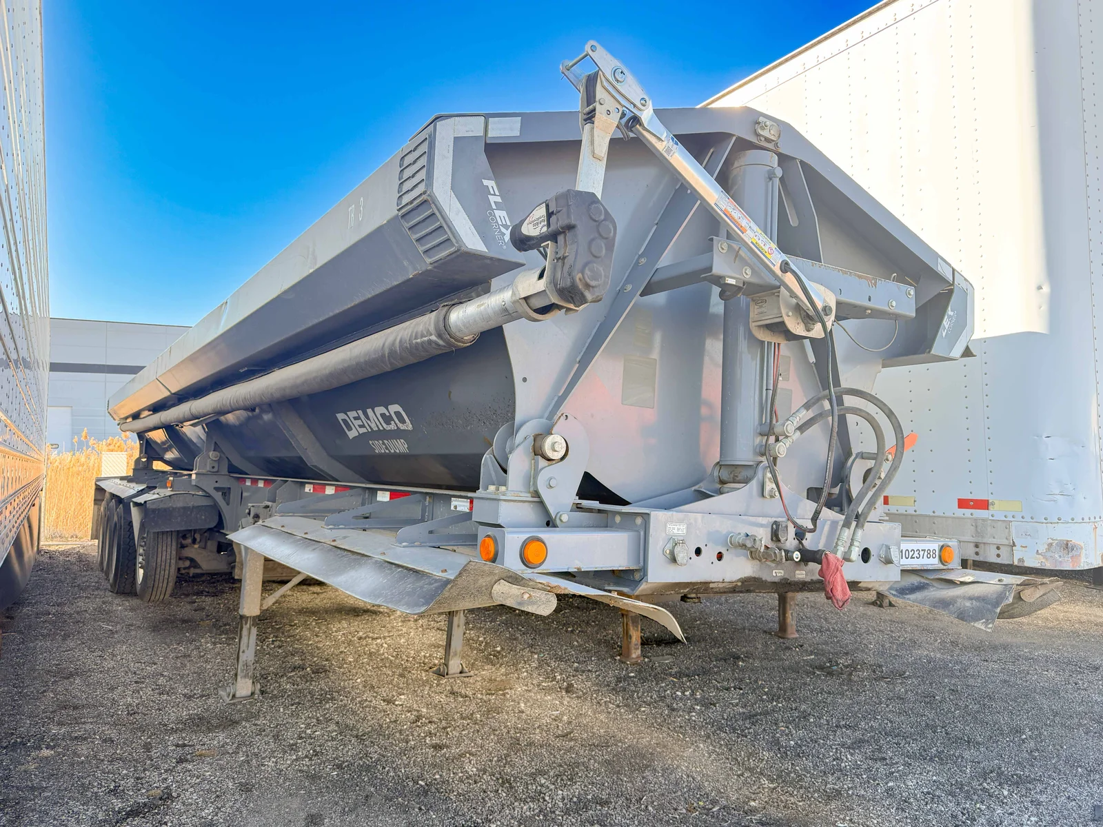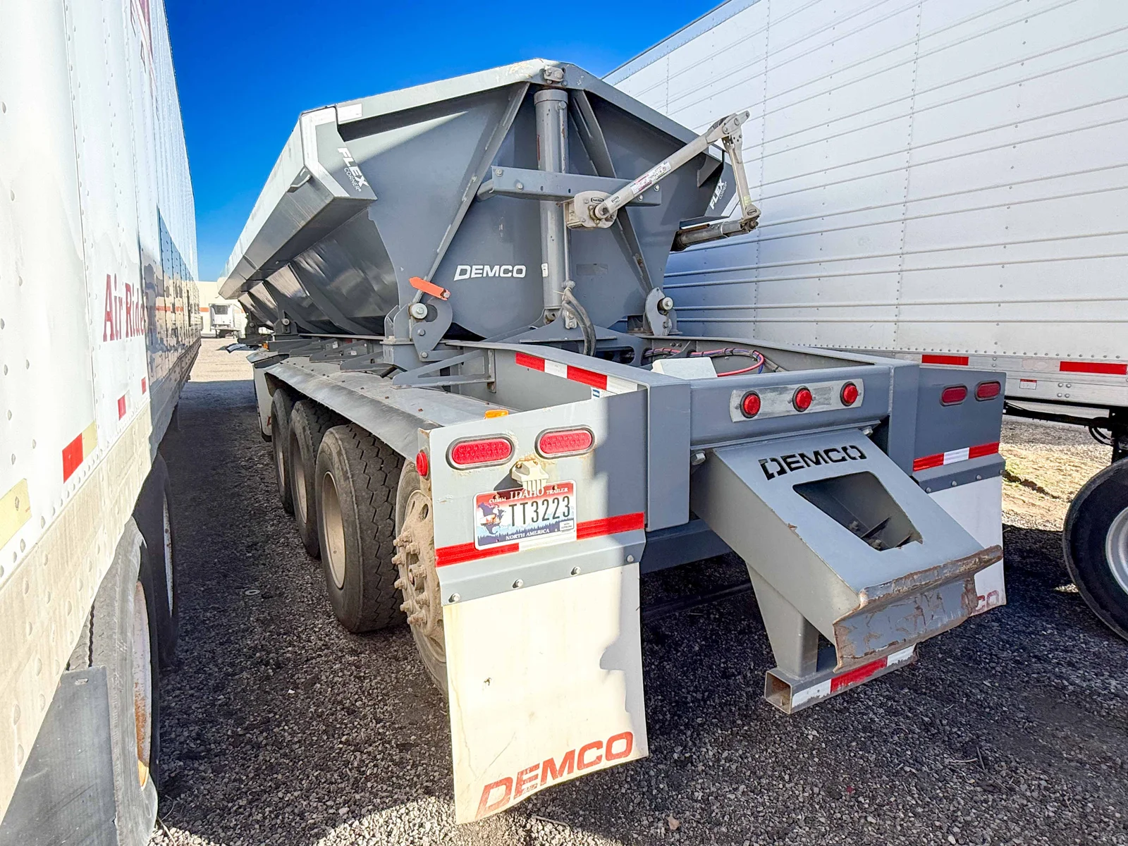 This 2022 Demco Side Dump trailer is engineered for rugged construction applications, featuring a gray aluminum tub and matching gray frame. The 5-axle setup with fixed air ride suspension ensures stability and performance under heavy loads.\n\nSpecifications:\n50' Side Dump Semi-Trailer\nGray Aluminum Tub and Frame\n5 Axles\nFixed Air Ride Suspension\nAluminum Singles with 385/65R22.5 Tires\nVIN: 57CKS4451NS000464\n\nMountain West Utility Trailer offers financing and trailer rentals. Call us at 801-973-4040.