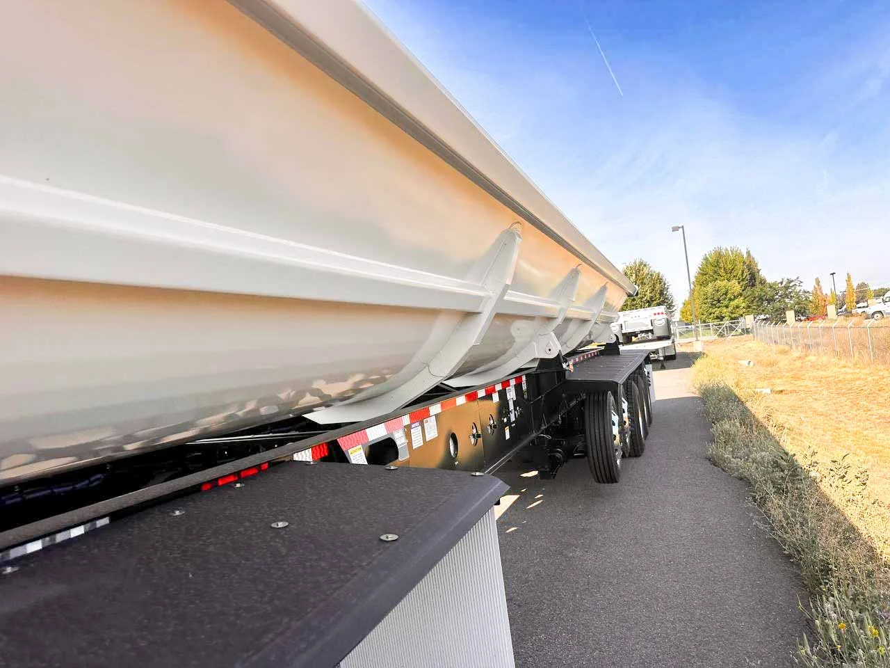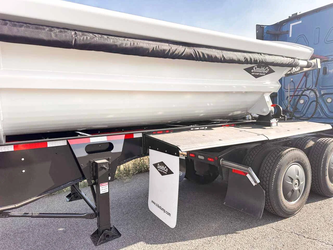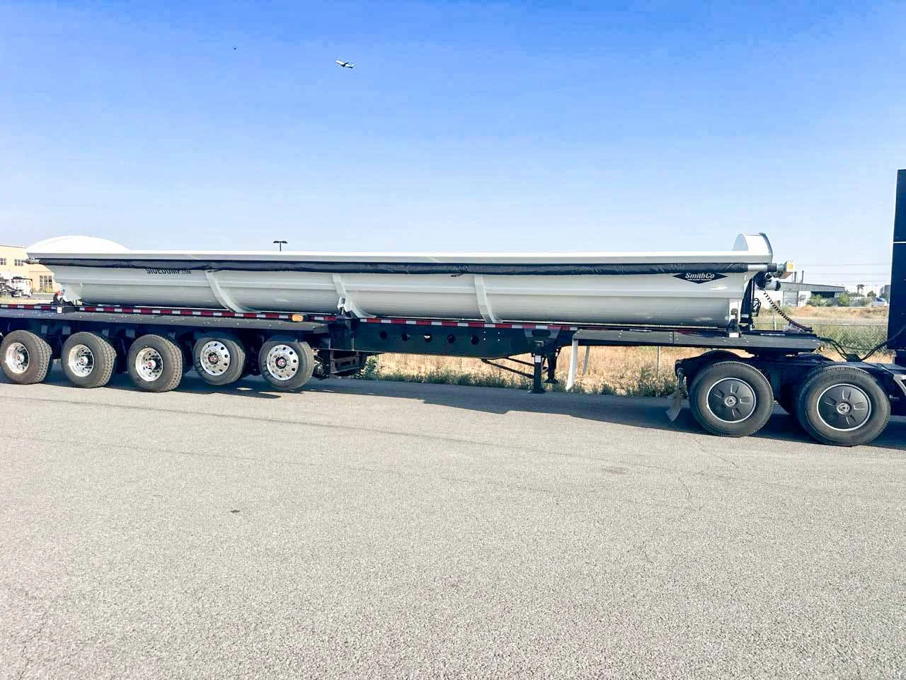 This 2026 side dump trailer is equipped with drum brakes, Ridewell RW260 air ride suspension, a 6-axle configuration with steerable lift axles, and a 40' 3/16" AR400 aluminum tub rated at 35.6 cubic yards heaped. The steerable lift setup and high-capacity tub support demanding aggregate operations.\n\n• 2026 SmithCo Side Dump Trailer\n• Aluminum Construction\n• 40' 3/16" AR400 Tub\n• 35.6 Cubic Yard Capacity Heaped\n• 6 Axles\n• Axle #1 Steerable Lift\n• Axle #2 Steerable Lift\n• Axle #3 Fixed\n• Axle #4 Fixed\n• Axle #5 Fixed\n• Axle #6 Steerable Lift\n• Ridewell RW260 Air Ride Suspension\n• Fixed Suspension Style\n• Drum Brakes\n• Aluminum Single Wheels\n• Double Coin RLB980 385/65R22.5 Tires\n• 2 Speed Landing Gear\n• 6" Hydraulic Cylinders\n• Aero SideKick 2 Electric Tarp System with Mesh Tarp\n• Tarp Lockout Safety Switch\n• Control Valve on Trailer\n• Large Liquid Filled Air Gauge\n• Grease Bank for Hydraulic Cylinders\n• LED Lighting Package\n\nThis trailer is available now at our Spokane, Washington location. Mountain West Utility Trailer offers financing and trailer rentals. Call us at (509) 321-2326.