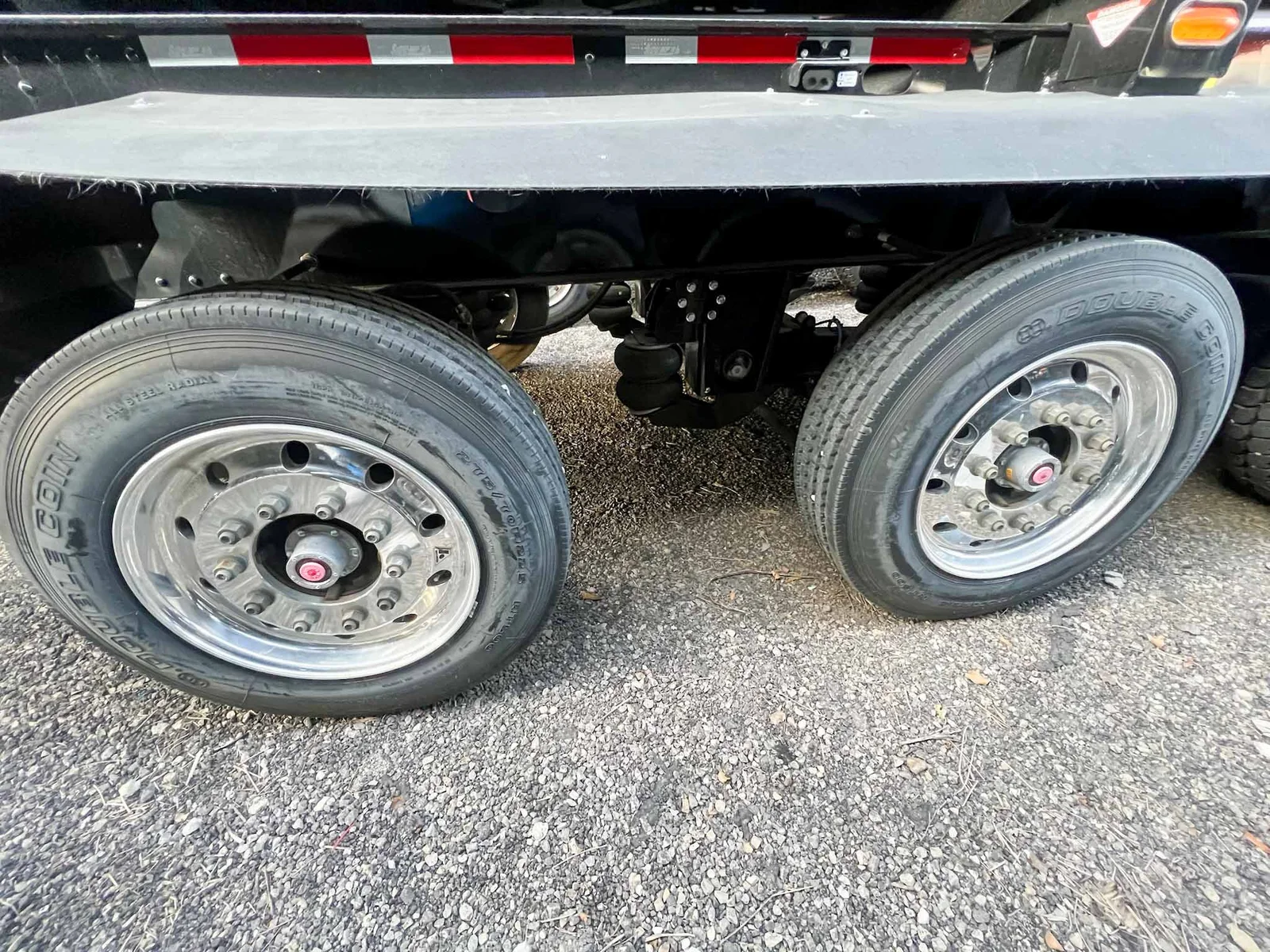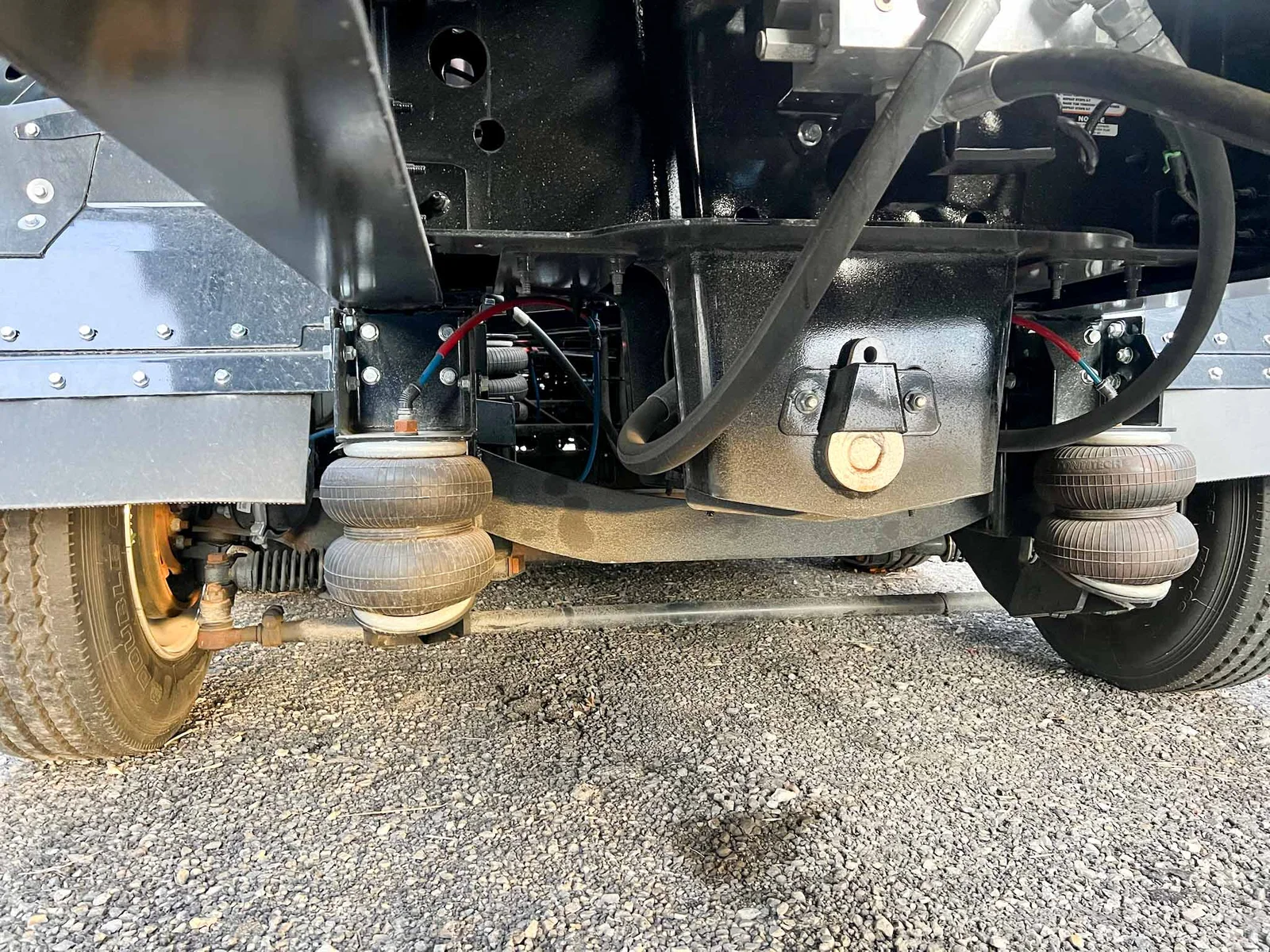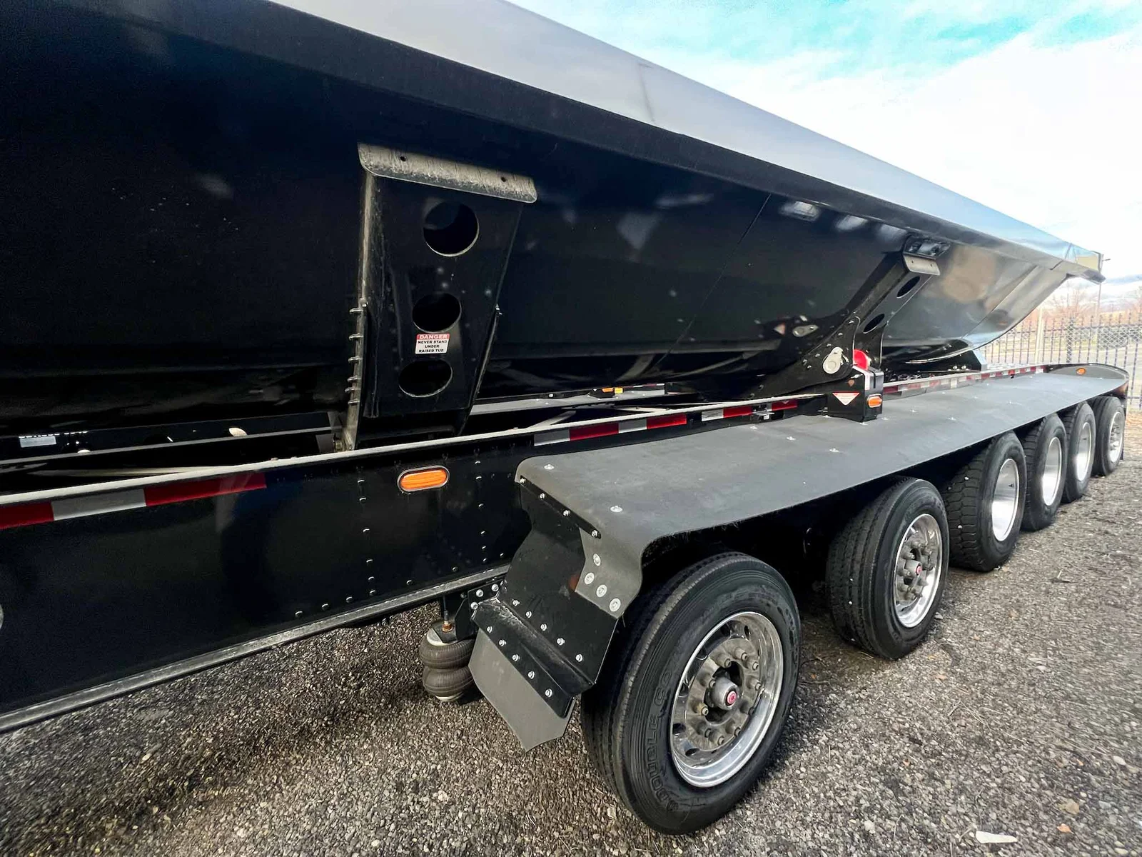 6-axle side dump semi-trailer engineered for heavy payload control. Air-ride suspension with steerable lift axles on #1, #2 & #6; #3–#5 fixed for tracking and stability. 53' overall with a 40' 3/16" HARDOX 500TUF steel tub for abrasion resistance. Aluminum single wheels. Aero Sidekick 2 electric tarp with safety switch. Two-speed landing gear, rock guard, bolt-on push block, and fender belting for jobsite protection. Equipped with drum brakes.\nMountain West Utility Trailer offers financing and trailer rentals. Call us at 801-973-4040.