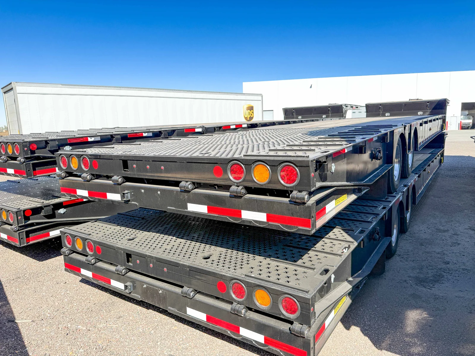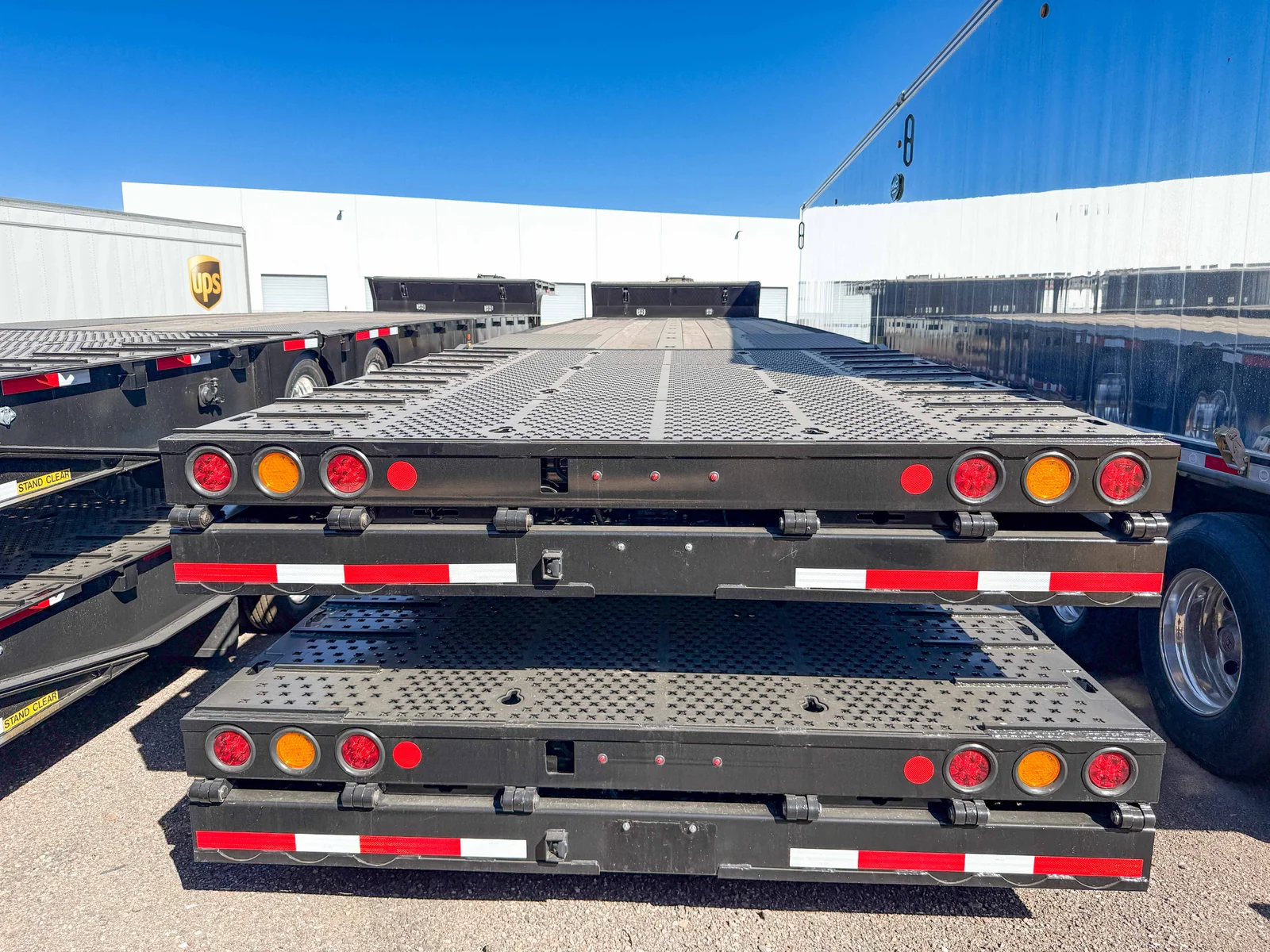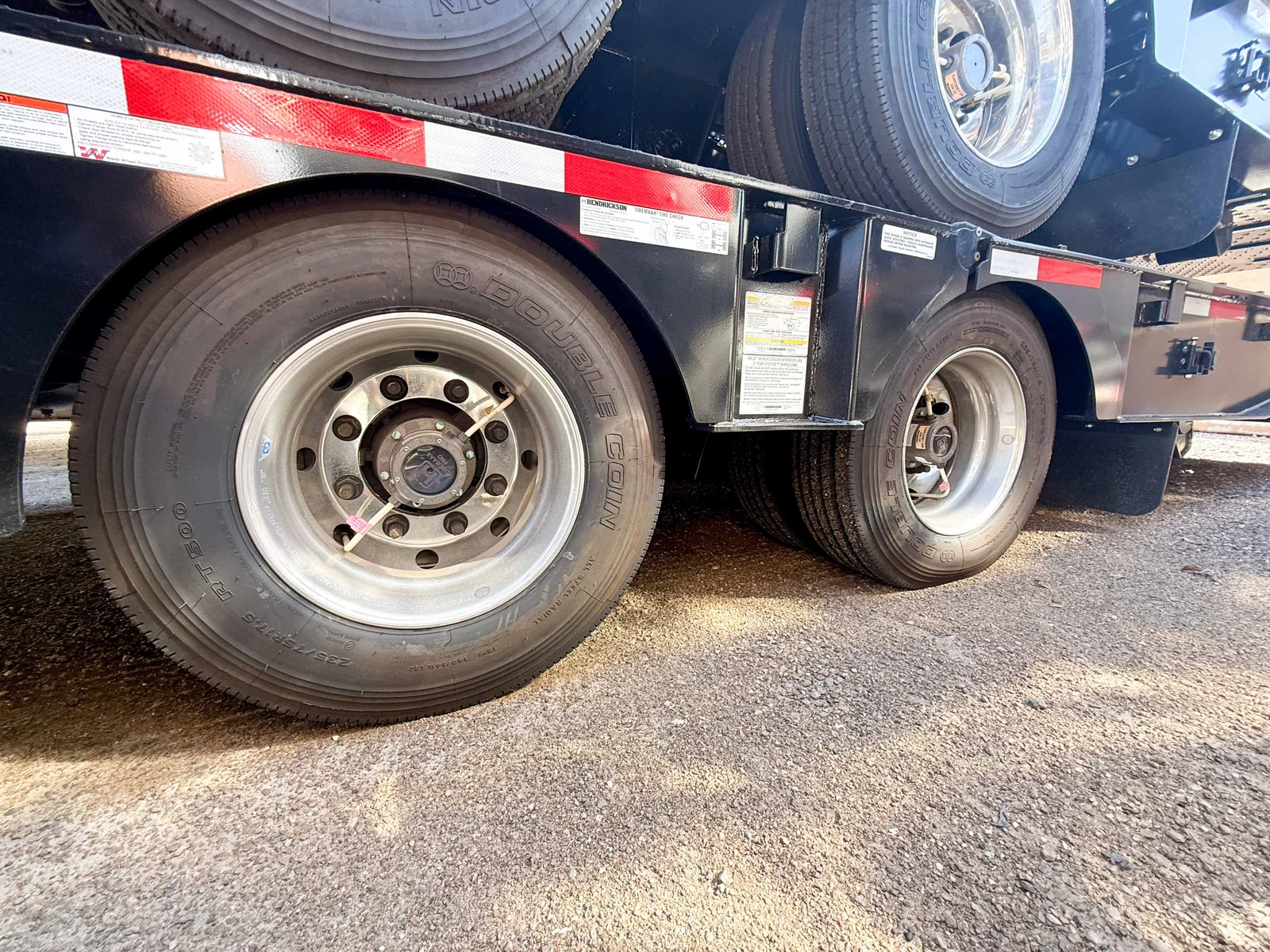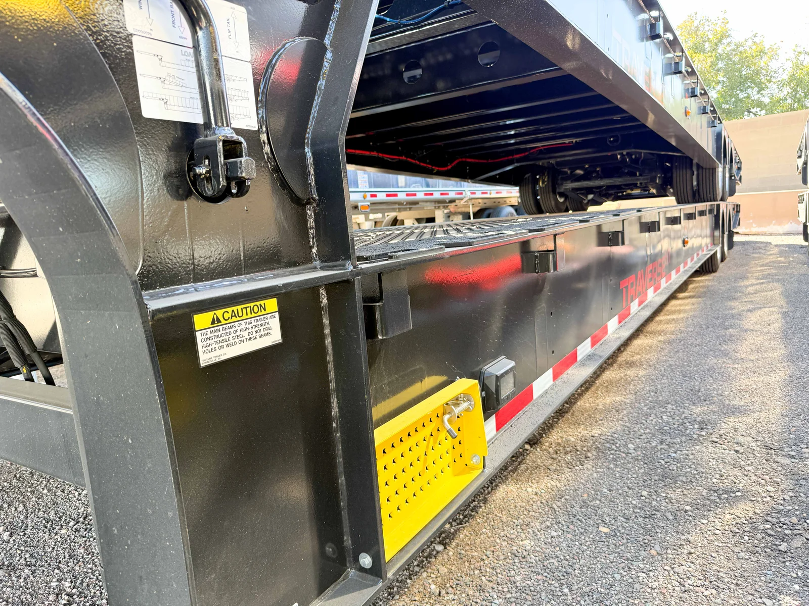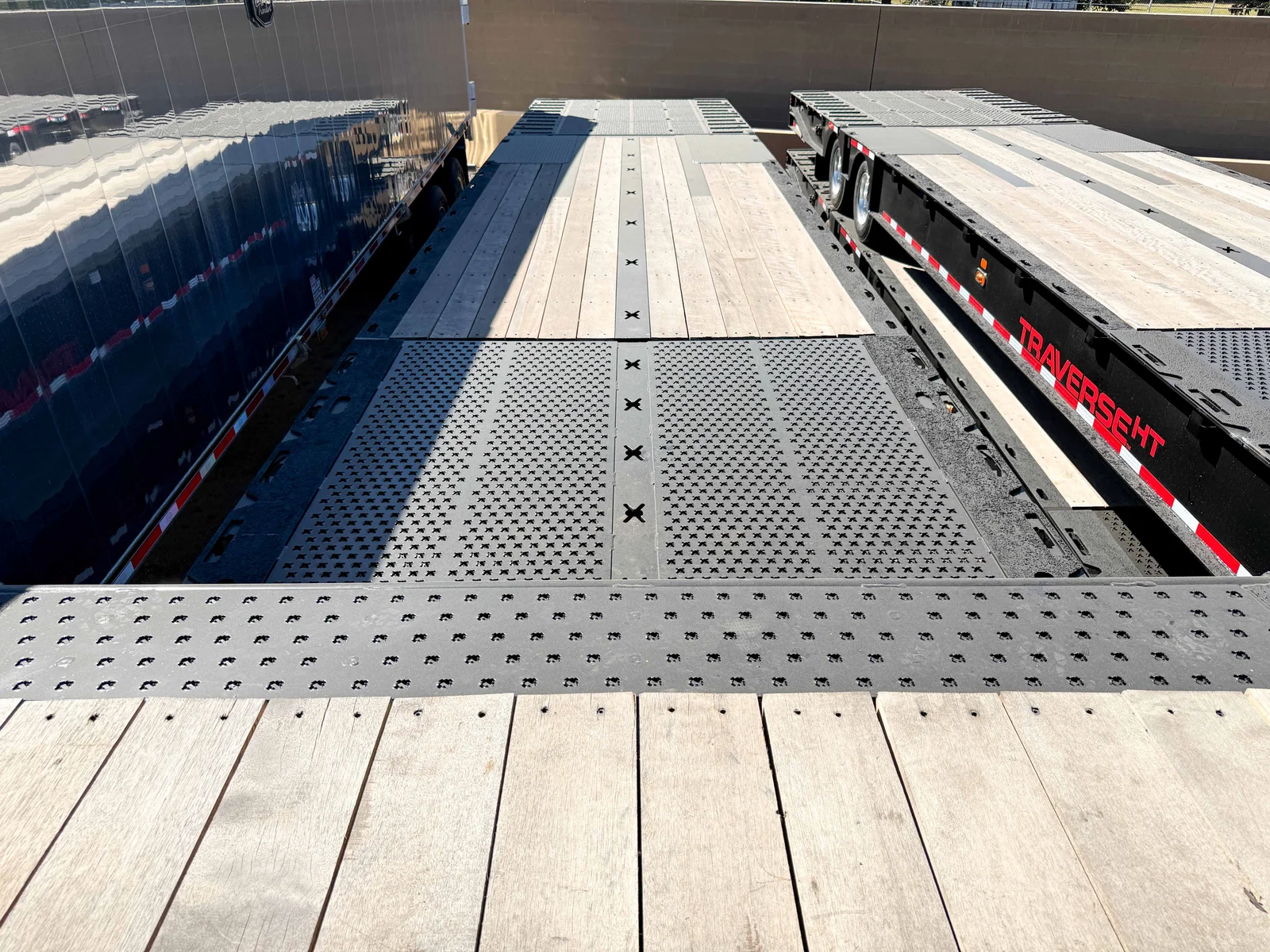 Traverse HT 40 Ton Hydraulic Tail Trailer 40 Tons - PHOENIX, AZ Inventory\nEvenly Distributed, 33 Tons in 16', 25 Tons in 10', 11 Degree Rear Loading Ramp Angle, 13 Degree Hdraulic Front Ramp w/ Traction Plate (8'5"), 47'11" OAL, 1-3/8" Apitong Wood Flooring, 49" Loaded 5th Wheel Height, 85" Swing Radius, 18,000 lbs. Winch w/ Air Clutch & 75' Cable, Radio Remote Control (winch, main tail, flip tail, locks), Dual Controls on side of Gooseneck, 2-Spd. Landing Gear, (2) Toolboxes located on Gooseneck, 38'2" Clear Deck Space, 35" Loaded Deck Height, Alternating Combo Stake Pockets / Chain Hook Slot & Double Key Hole Slots down Center & Gooseneck Ramp, Tandem Axle, 12.25" x 7.5" Drum Brakes, 49" Axle Spacing, 4S/2M ABS, Hendrickson Tiremaxx PRO Tire Inflation System, Air Weigh Load Scale, 235/75R17.5 Tires, O/S Aluminum Wheels, I/S Steel Wheels, (3) Marker Lights per side, 3-3-3 Rear Lighting, 4-Pin Auxiliary Connection on C/S Rear of Deck, 10'5" Main Tail Length, 4' Flip Tail Length, Tail Raises to 72" tall, Tail can Lift 25,000 lbs. evenly distributed, Document Holder mounted in R/S Toolbox, Estimated Weight - 17,653 +/- 3%