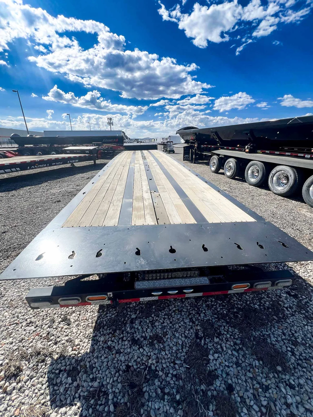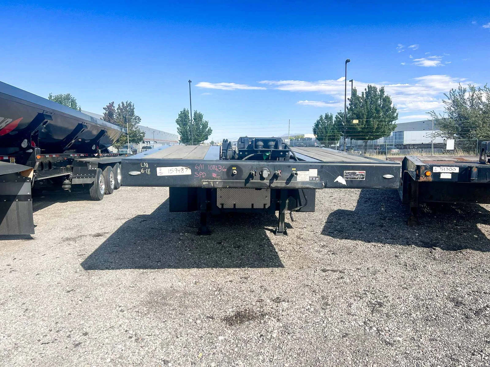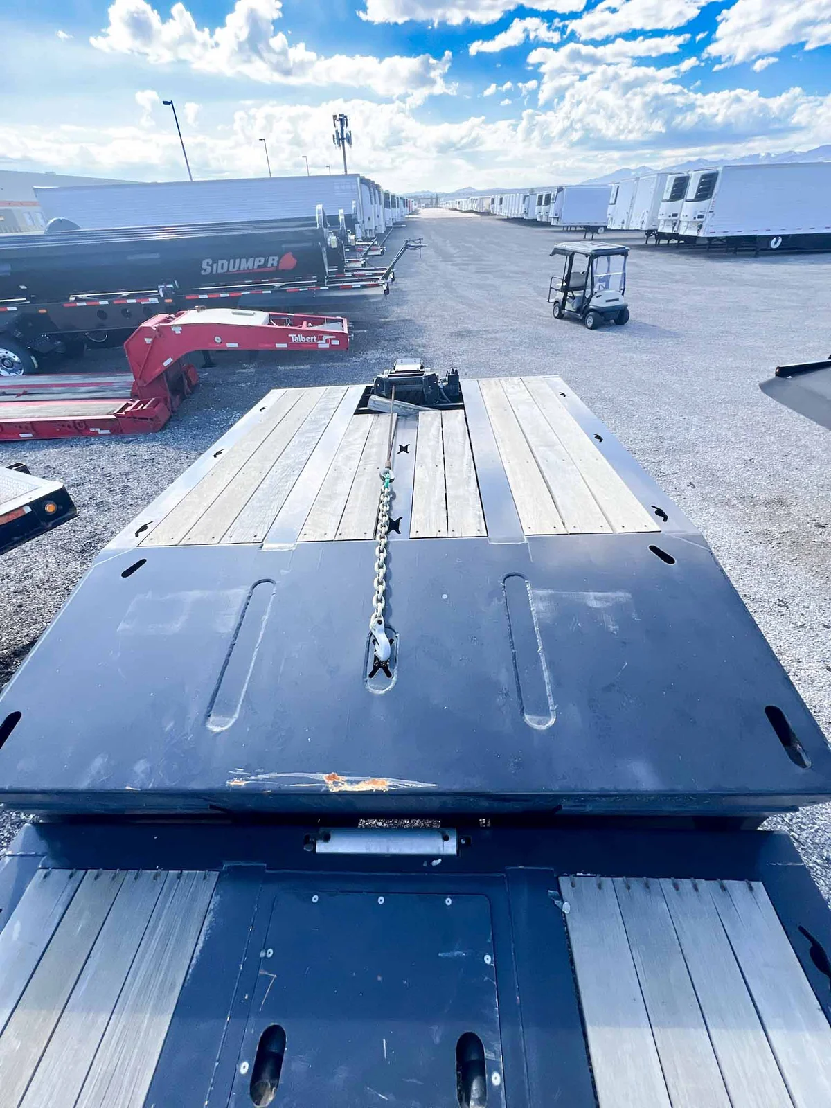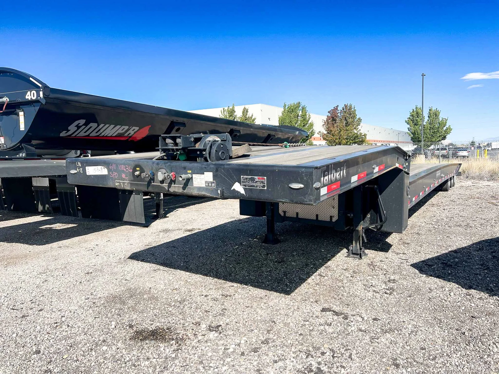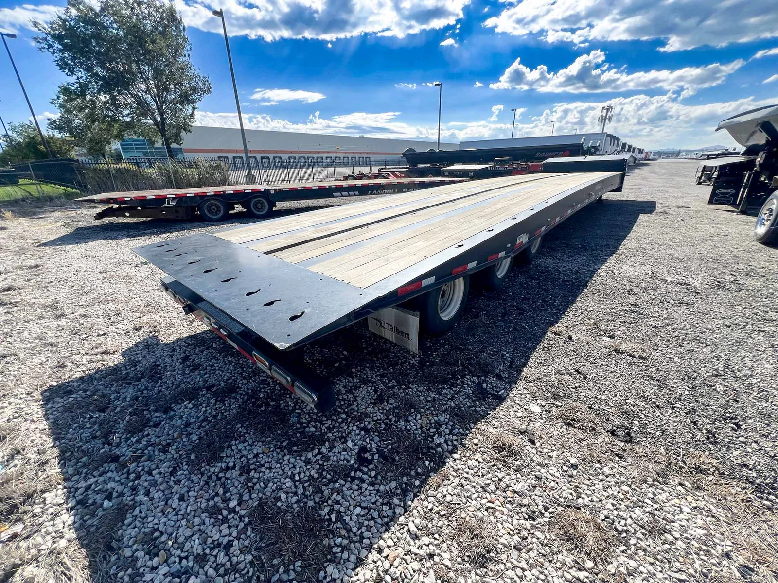 This 2025 Talbert 55-Ton Traveling Axle Drop Deck trailer is built for heavy-duty performance, featuring a 53' length, triple axles, and a wood floor with extensive tie-down options. Engineered for durability and precision loading, it's ideal for transporting large and heavy equipment. Available for purchase at $145,997.\n\nSpecs:\n\n53' Drop Deck Trailer\n\n55-Ton Capacity\n\nAluminum Construction\n\n3 Axles with 50" Axle Spacing\n\nRidewell Air Ride Suspension (Slider Style)\n\n17.5" Steel Wheels with (12) 235/75R17.5 16-ply Tires\n\nUpper Deck Length: 11'9"\n\nLower Deck Length: 41'3"\n\nLoaded Deck Height: 36"\n\n1-1/2" Apitong Wood Flooring\n\nDouble Keyhole Chain Slots on 36" Centers (Side Beams and Center Deck)\n\n(8) Keyhole Chain Slots on Rear Approach Plate\n\nCentralized Lube System\n\nValspar Black Paint (Standard Talbert)\n\nFET Included\n\nMountain West Utility Trailer offers financing and trailer rentals. Call us at 801-973-4040.