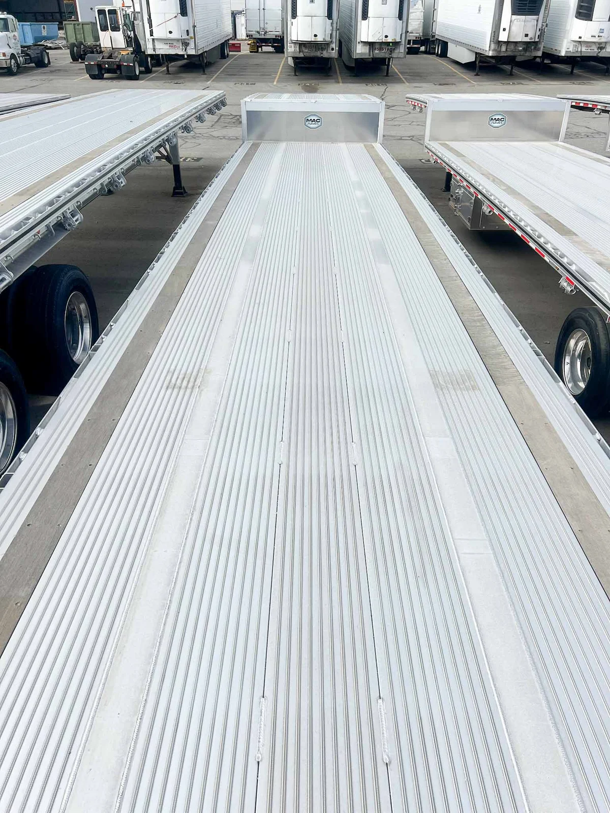 This aluminum drop deck semi-trailer is configured for versatile flatbed hauling with a lightweight build, spread slider axles, and air ride suspension for improved load control and maneuverability.\n\nSpecs:\n\nTrailer Type: Drop Deck Trailer\n\nBrakes: Drum\n\nLength: 53'\n\nAxles: 2\n\nSuspension: Air Ride, Spread Slider\n\nTrailer Composition: Aluminum\n\nAluminum Floor\n\n11' Upper Deck\n\nHendrickson INTRAAX AAL 23K Air Ride Suspension\n\nCA Legal Rear Sliding Axle\n\nTiremaxx PRO Tire Inflation System\n\nRear Axle Dump Valve\n\nWinch Track on Both Sides\n\n(12) Sliding Winches\n\nAluminum Double Door Toolbox (18" x 24" x 60")\n\n4-Way Auxiliary Connection at Rear\n\nLED Side and Rear Lighting Package\n\nAluminum Wheels\n\nFET Included\n\nMountain West Utility Trailer offers financing and trailer rentals. Call us at 801-973-4040.