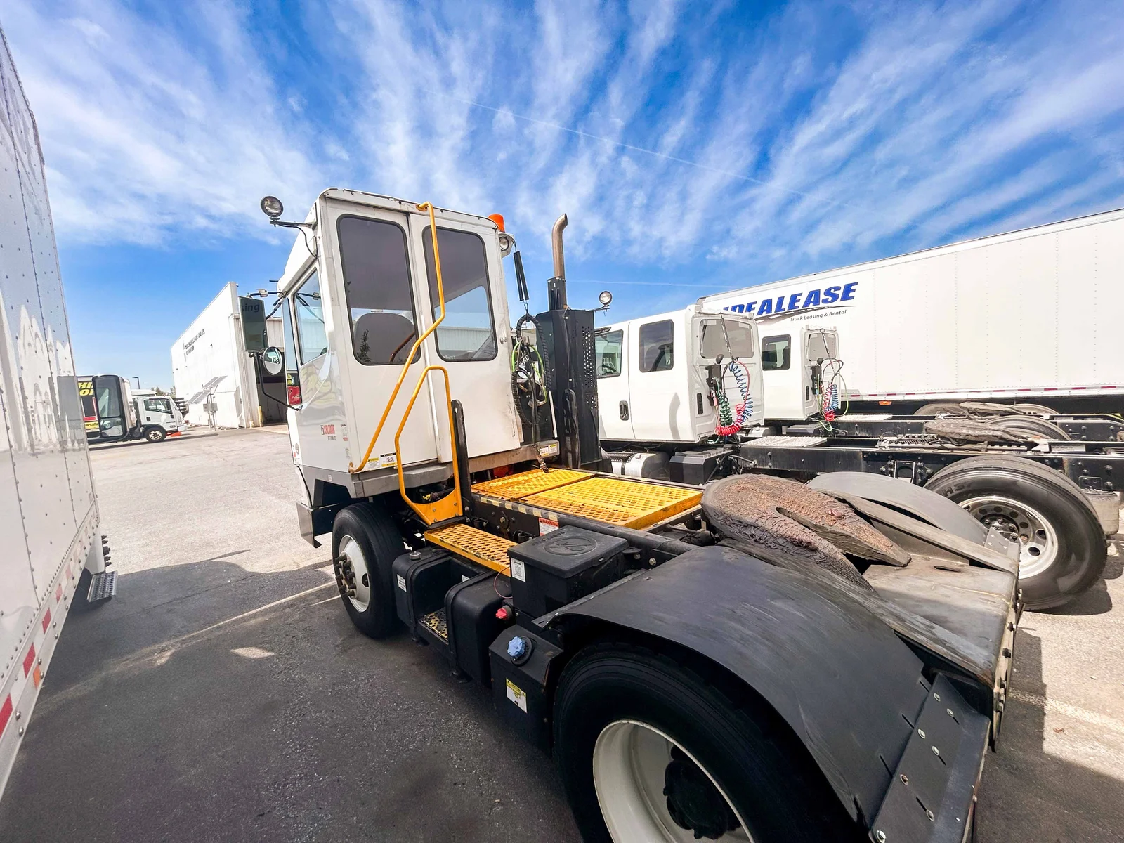 2021 Kalmar Ottawa T2 DOT yard truck with Cummins B6.7 200 HP engine and Allison 3000RDS transmission. Equipped with Meritor FF-961 front axle, RS24160 rear axle, and parabolic leaf spring suspension. Features include a 116" wheelbase, Holland FW-35TT fifth wheel rated at 80,000 lbs, and 5" lift cylinders. The cab includes air conditioning, Bluetooth radio, heated moto mirrors, and air-ride driver seat. Safety and electrical features include strobe light, smart backup alarm, LED lighting, and dual rear-facing floodlights. Mountain West Utility Trailer offers financing and trailer rentals. Call us at 801-973-4040.