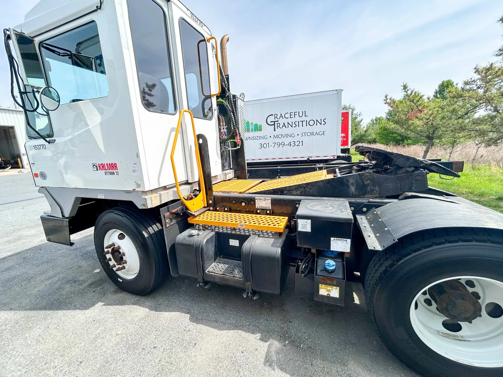 2018 Kalmar Ottawa T2 DOT yard truck with Cummins B6.7 200 HP electronic engine and Allison 3000RDS transmission. Features Meritor FF-961 front axle and RS-24-160 rear axle with diff-lock. Equipped with 116" wheelbase, 5" lift cylinders, spring suspension, and 22.5" steel wheels. Includes highway legal package with ABS, heated mirrors, A/C, Bluetooth radio, backup alarm, strobe light, and dual rear floodlights. Total operating hours: 6,590. Mountain West Utility Trailer offers financing and trailer rentals. Call us at 801-973-4040.